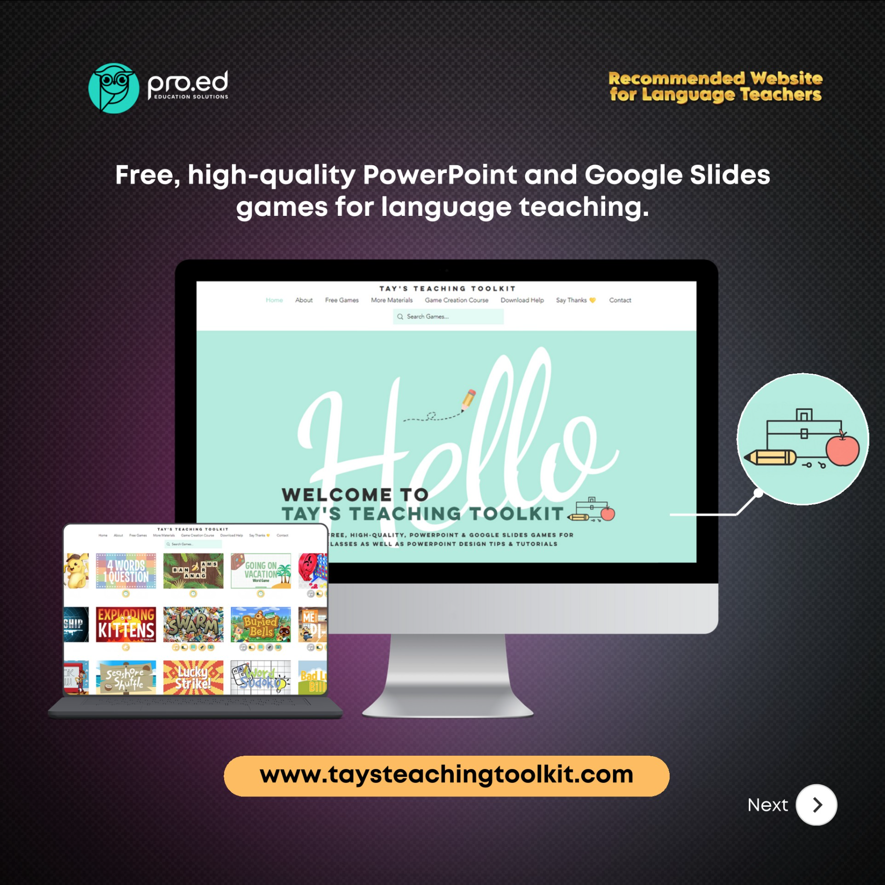 Use the links below to explore a growing library of over 130 games and templates that make language learning fun and effective. Designed for ESL/EFL teachers but easily adaptable for any language (and even some subjects), available in formats like PowerPoint, Google Slides, and more.