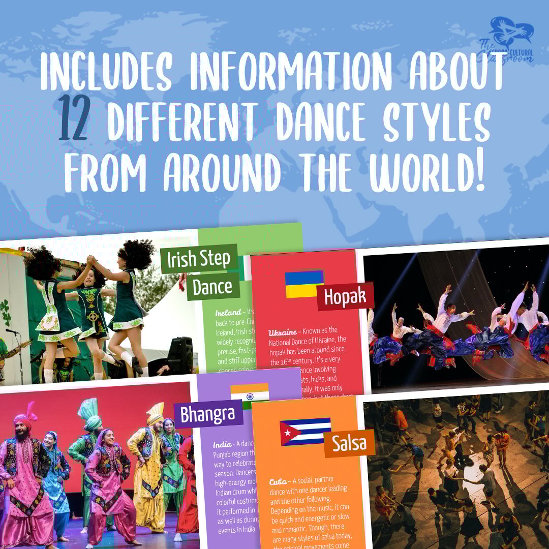 A beautifully designed PowerPoint which includes information about 12 different dance styles from various countries around the world: