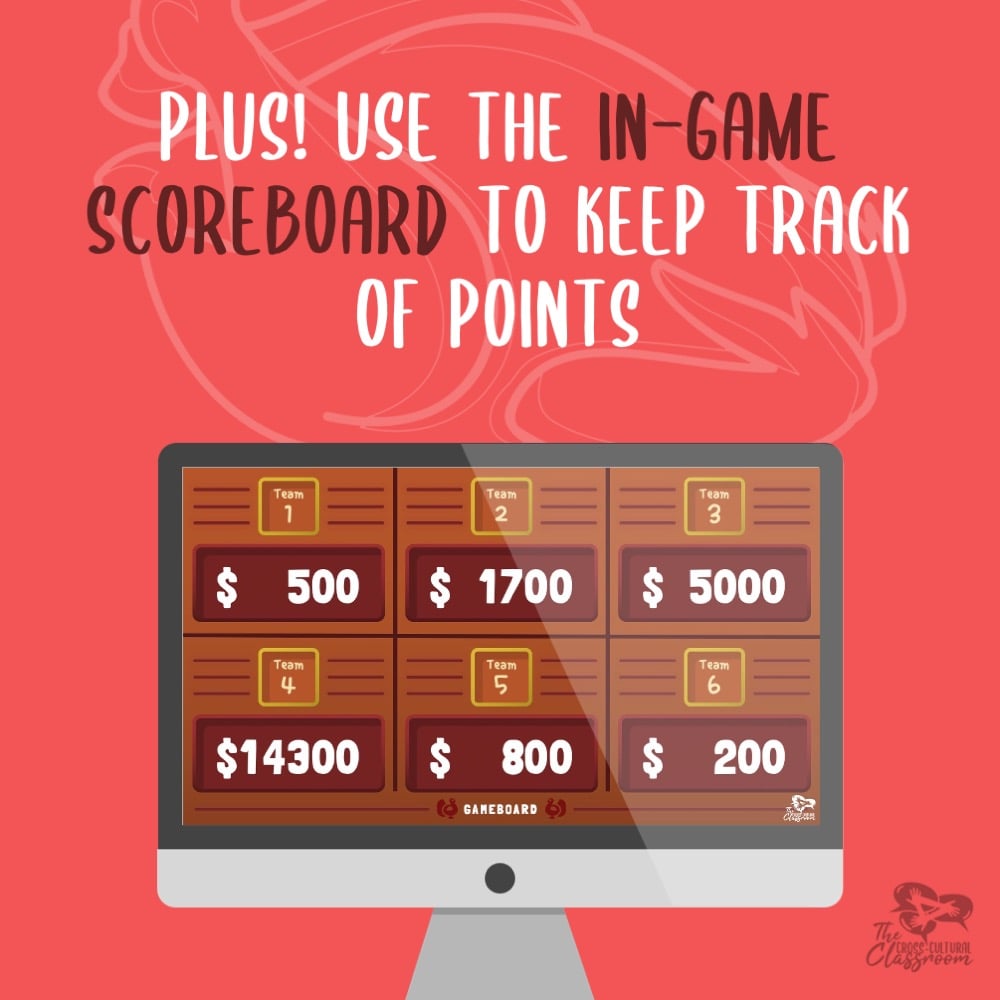 - The individual/pair/team that answers correctly the fastest gets the money! (I have also played where any team who answers correctly gets the money or only the team who chooses the question gets to answer for the chance at winning the money. How you play is up to you and what works best for your class.)