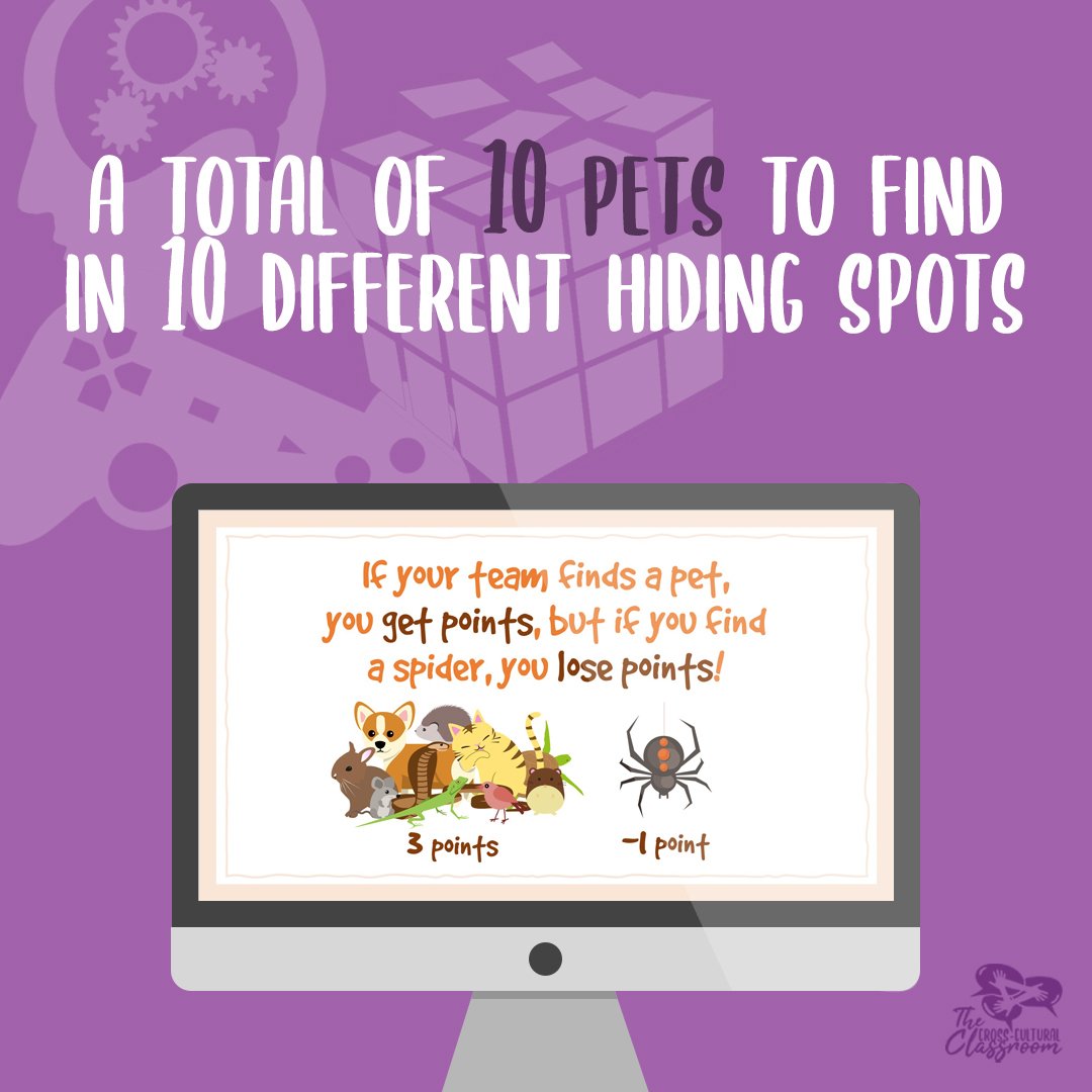 - If their team finds a pet, they get 3 points, but if they find a spider, they lose 1 point.