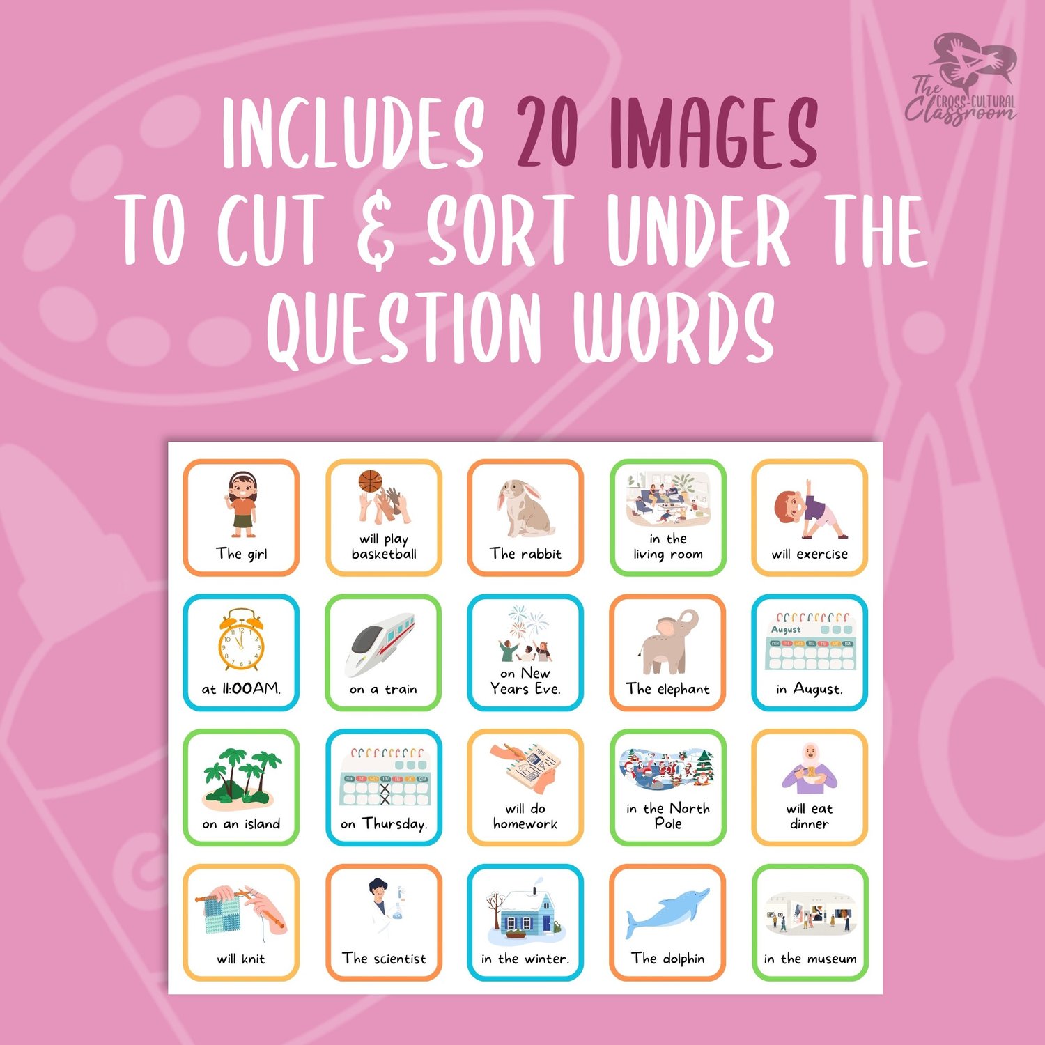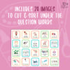 - First, students cut out the question word strips, strip holder template, and image squares.