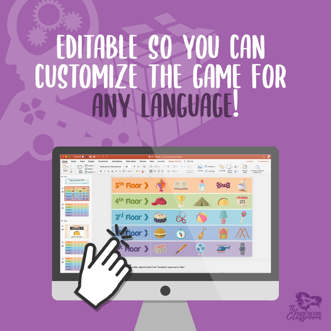 This game template has been created as a fun, animated PowerPoint and extra notes on how to play have been provided in the "Notes" sections of each slide. This game is also ready to play as is. However, if using it for a different language or you would like to change the floor numbers, all the text is editable. This Powerpoint has been tested on both Windows and Mac. If you have any questions, don't hesitate to reach out.