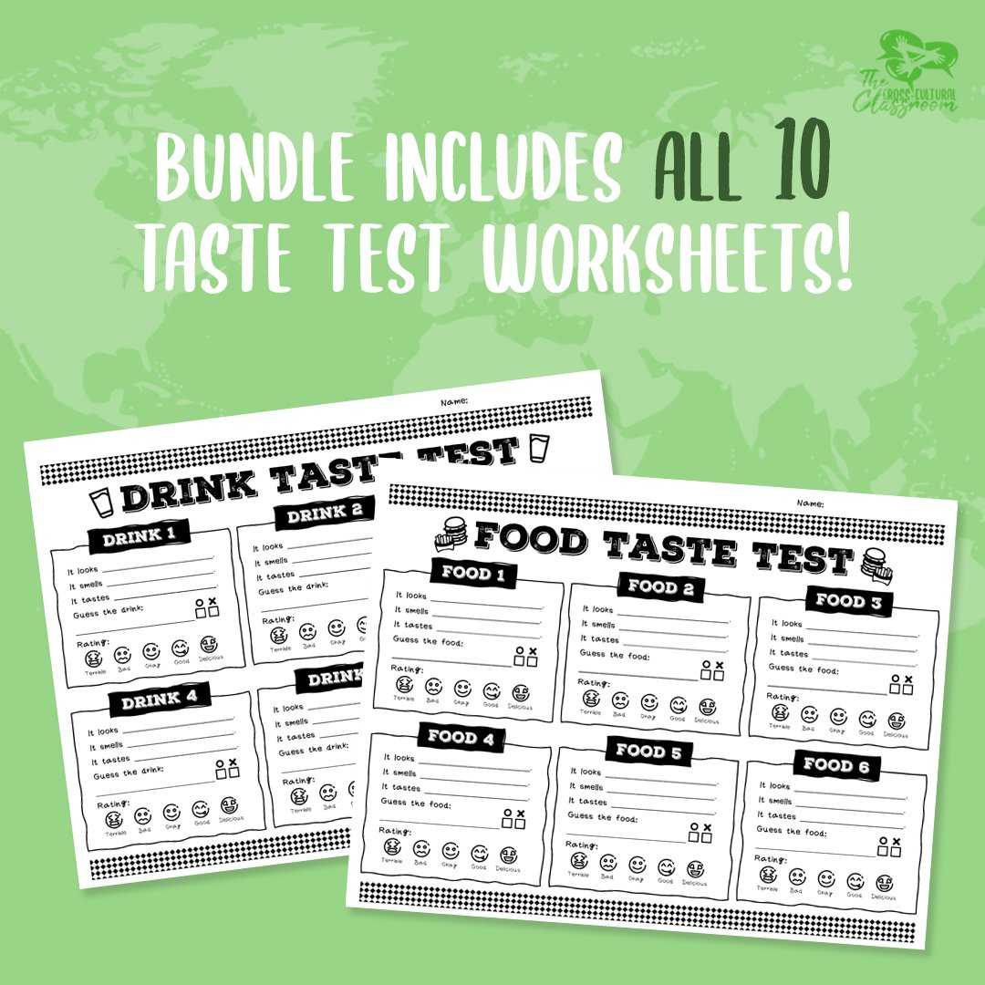 For these worksheets, students fill out a form for each type of food, drink, spice, or sauce they try. Information they have to fill out includes:
