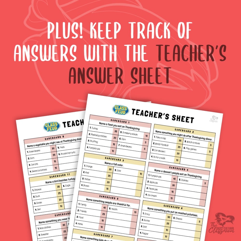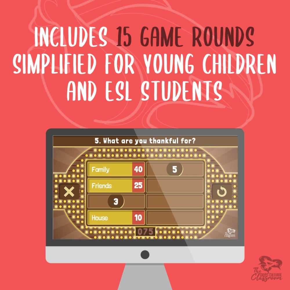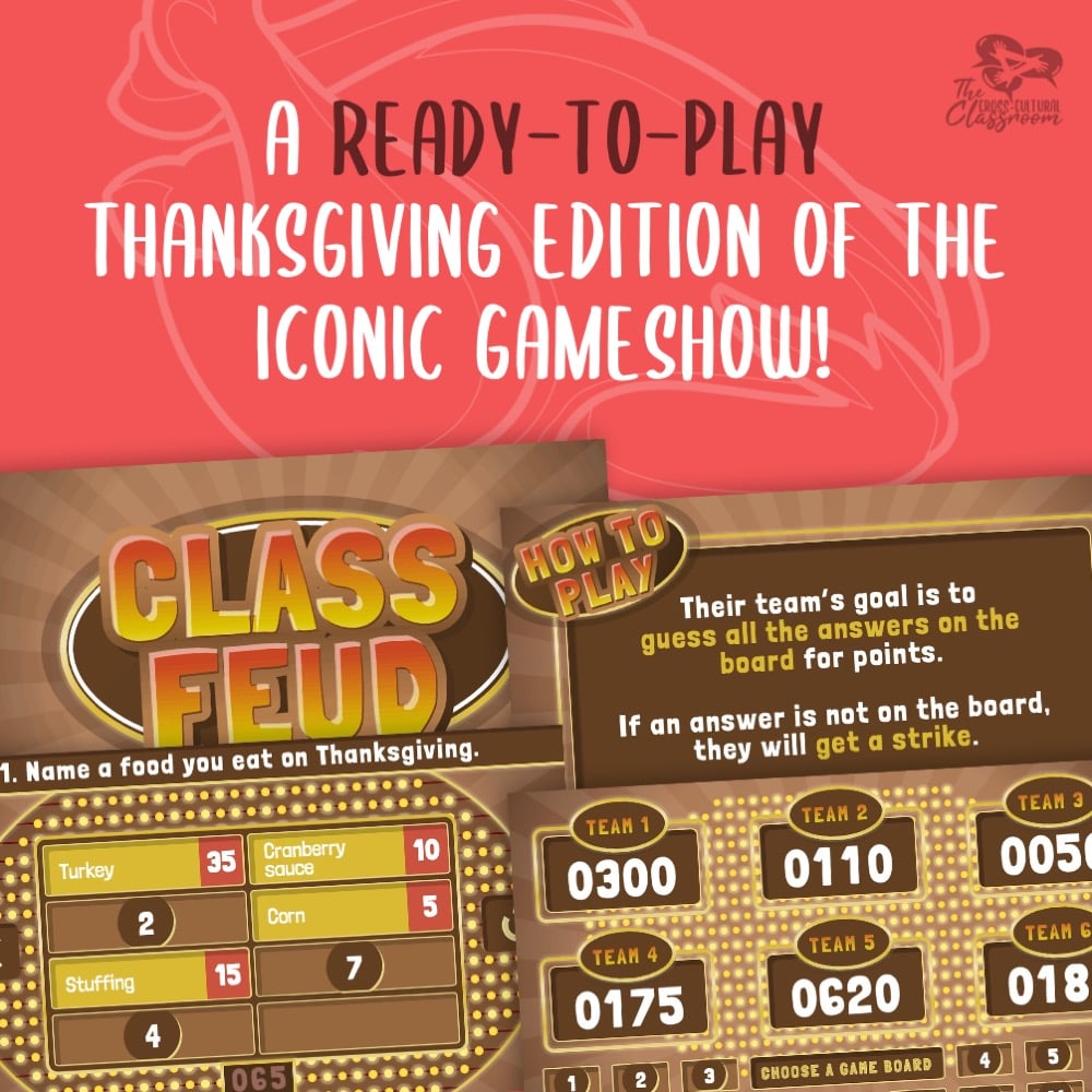 Based on the popular game show, Family Feud, this ready-to-play Thanksgiving edition features a new, streamlined design made for easy classroom play!