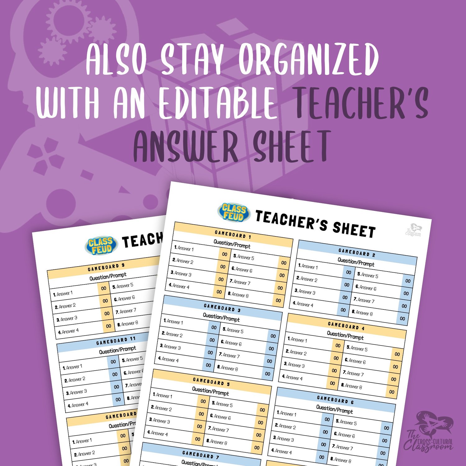 - Download file also includes an editable teacher's answer sheet to help you keep track of questions and answers during the game