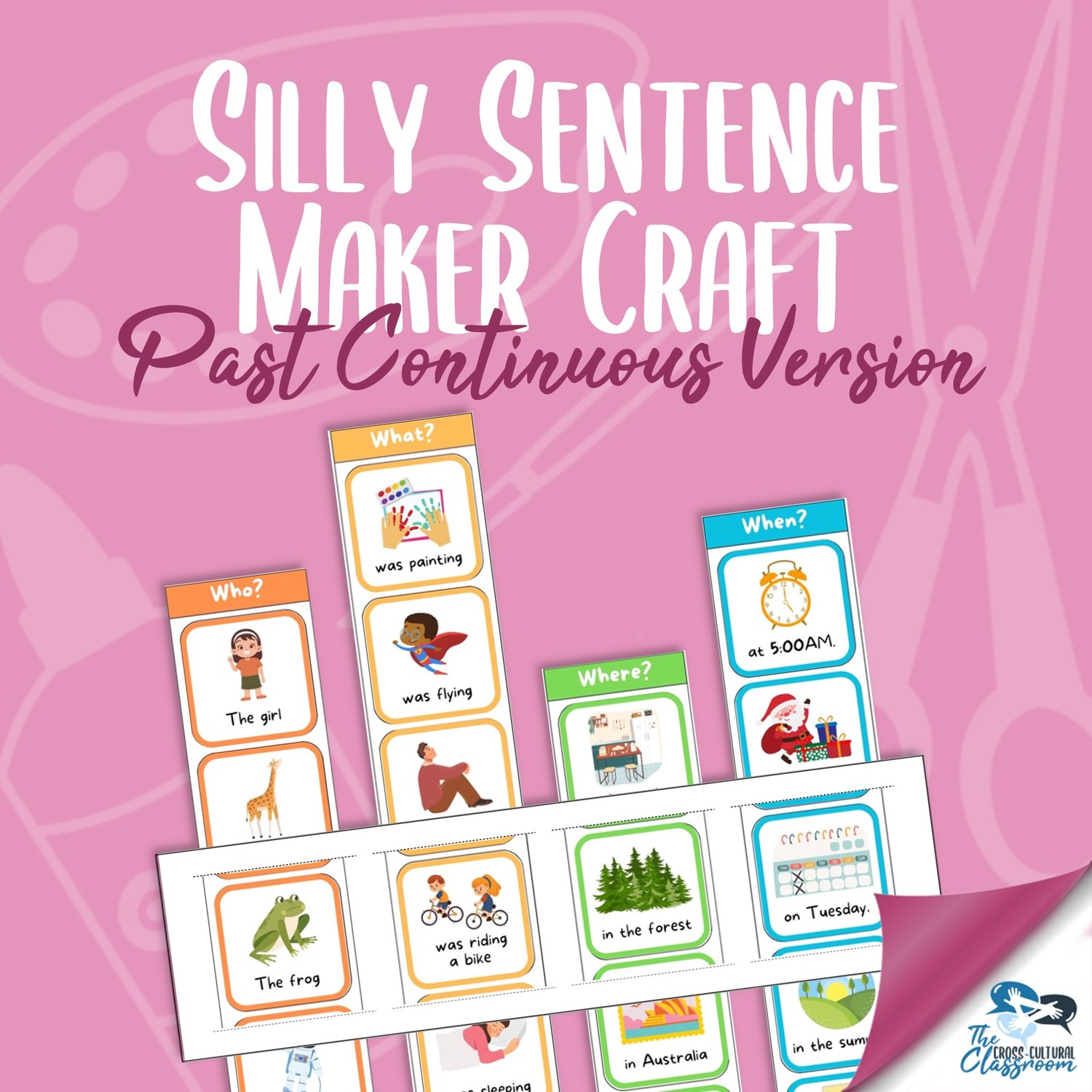Get ready for the laughs as students put together some interesting and wacky sentences using this silly sentence maker! It's a great project for practicing sentence building using who, what, where, and when as well as using the past continuous tense.