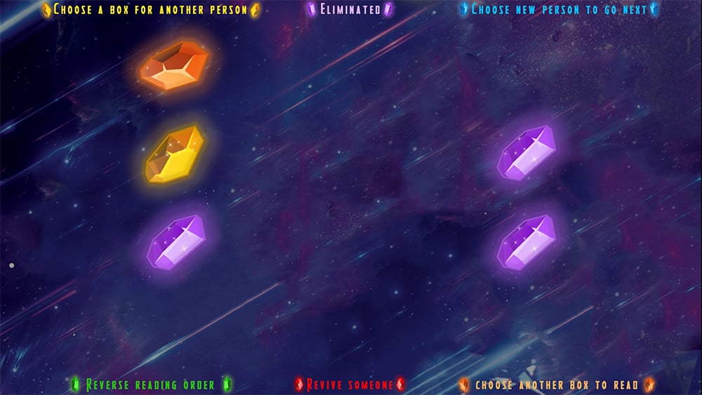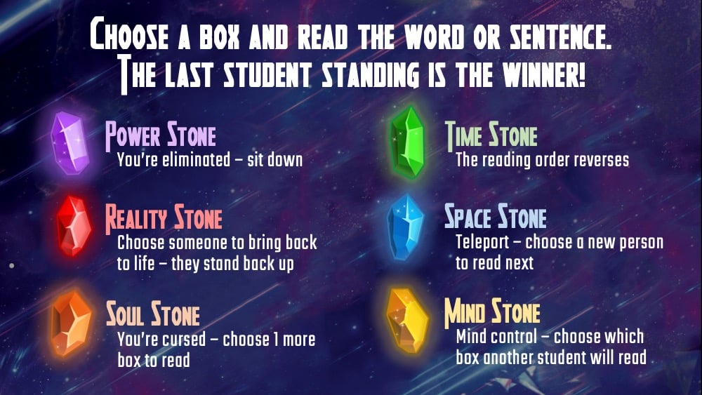 - The teacher clicks the box to reveal the infinity stone (or lack thereof) behind the box.Â