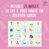 - First, students cut out the question word strips, strip holder template, and image squares.