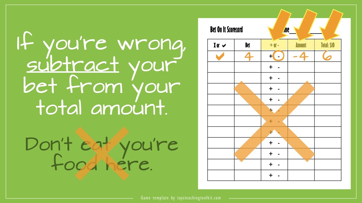 - However, if they are wrong, they have to subtract their bet from their total amount of money.