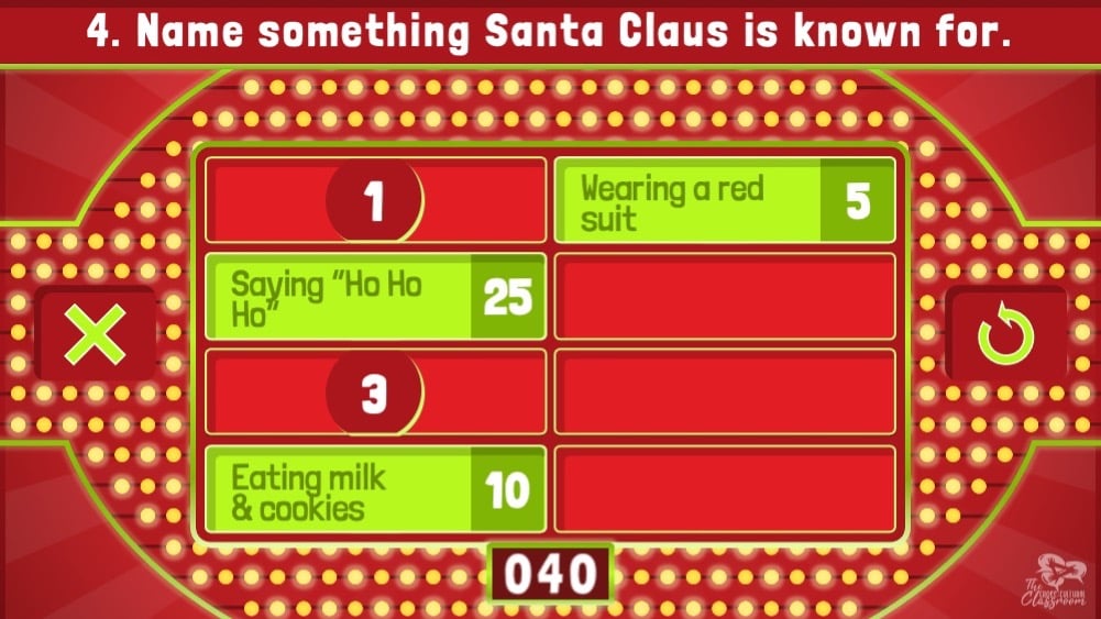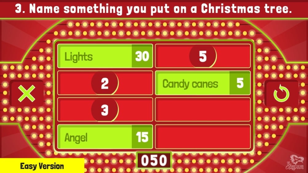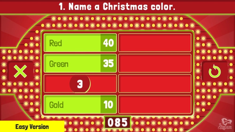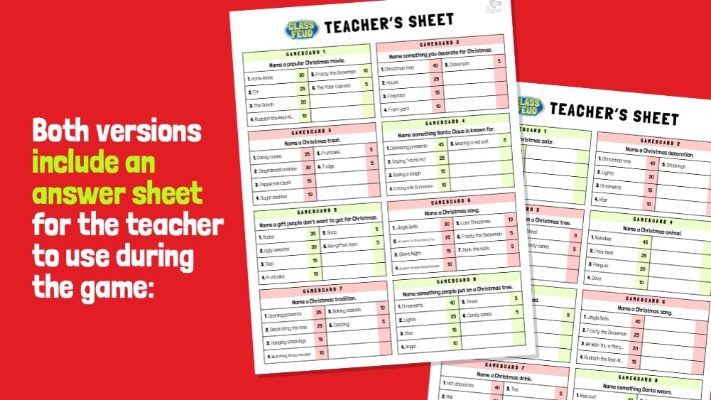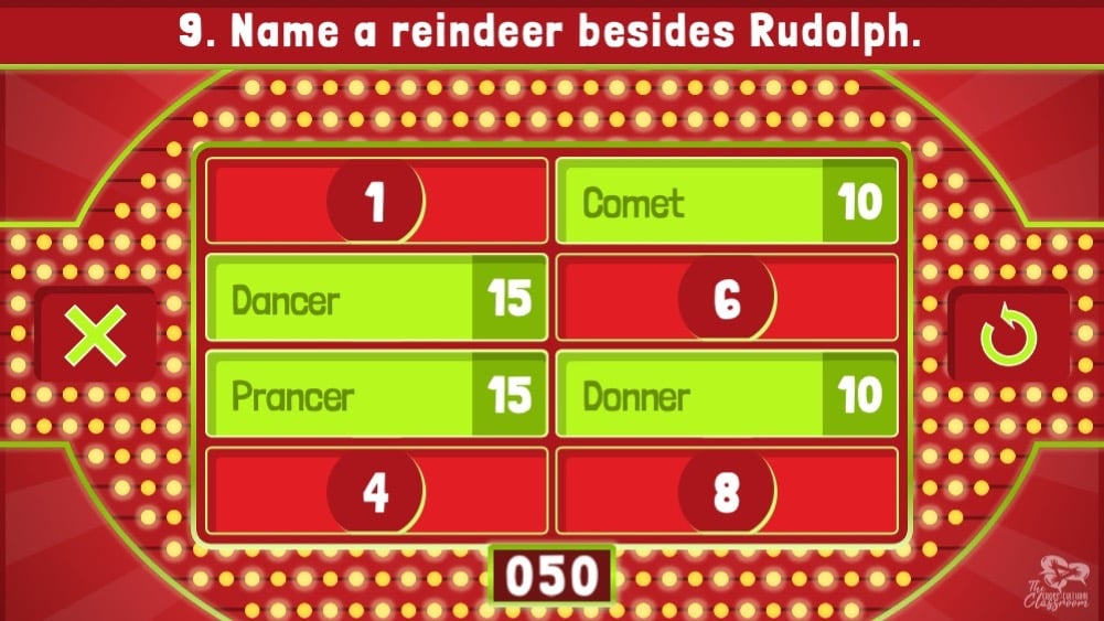 Based on the popular game show, Family Feud, this ready-to-play Christmas edition features a new, streamlined design made for easy classroom play!