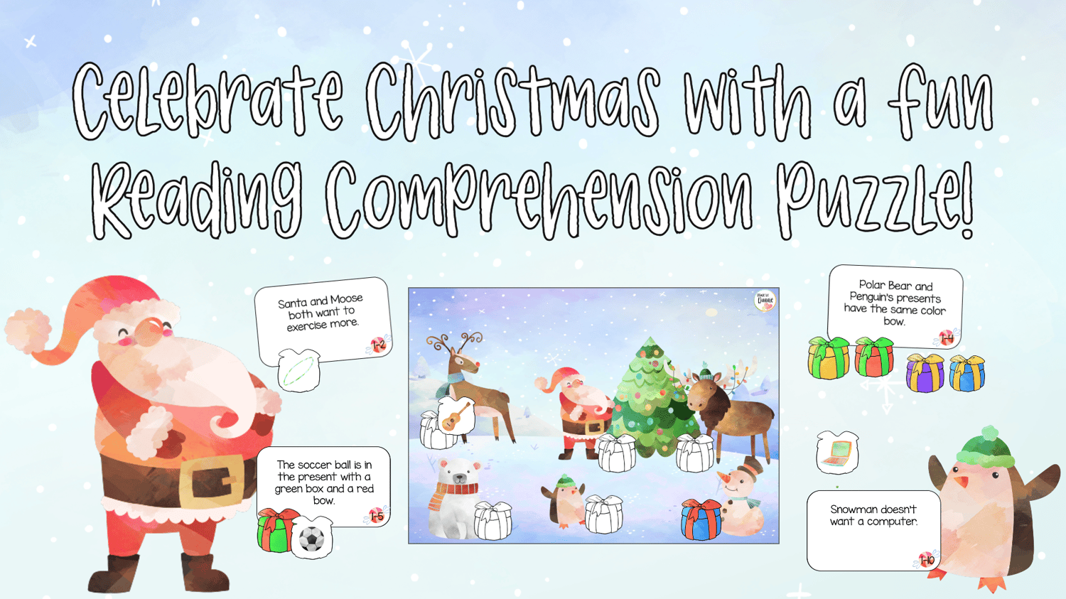 Your class will love this festive logic puzzle that blends reading comprehension and problem-solving! Students read short clues to figure out which gift belongs to each Christmas character, making it a fun and interactive way to strengthen inference and reading skills. Designed for small groups, this activity encourages teamwork, careful reading, and critical thinking. Perfect for a fun seasonal lesson that still builds real skills!