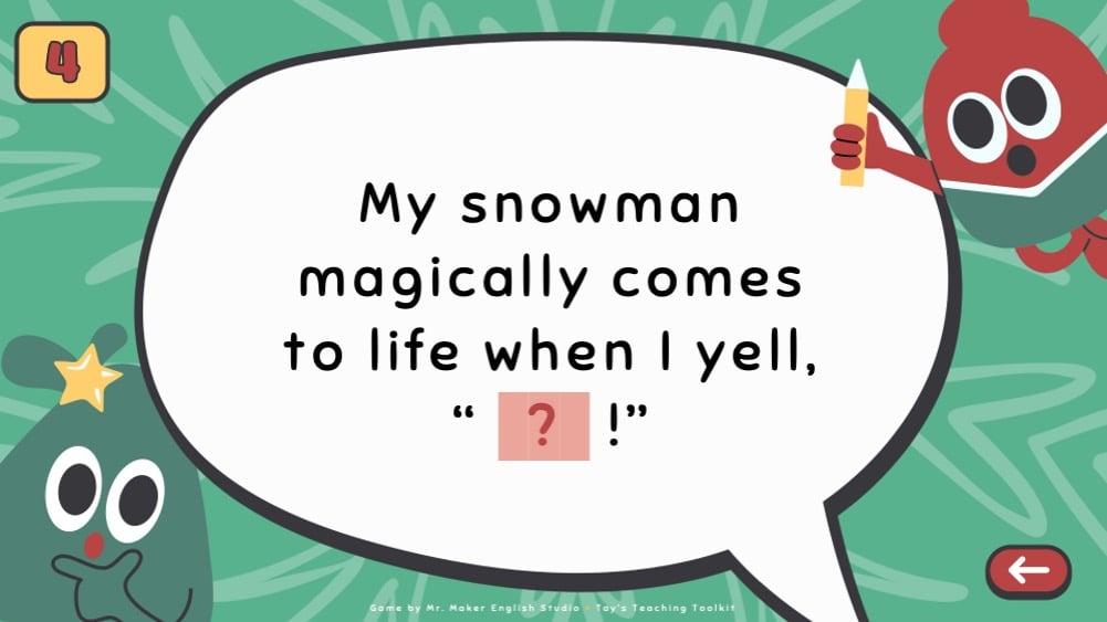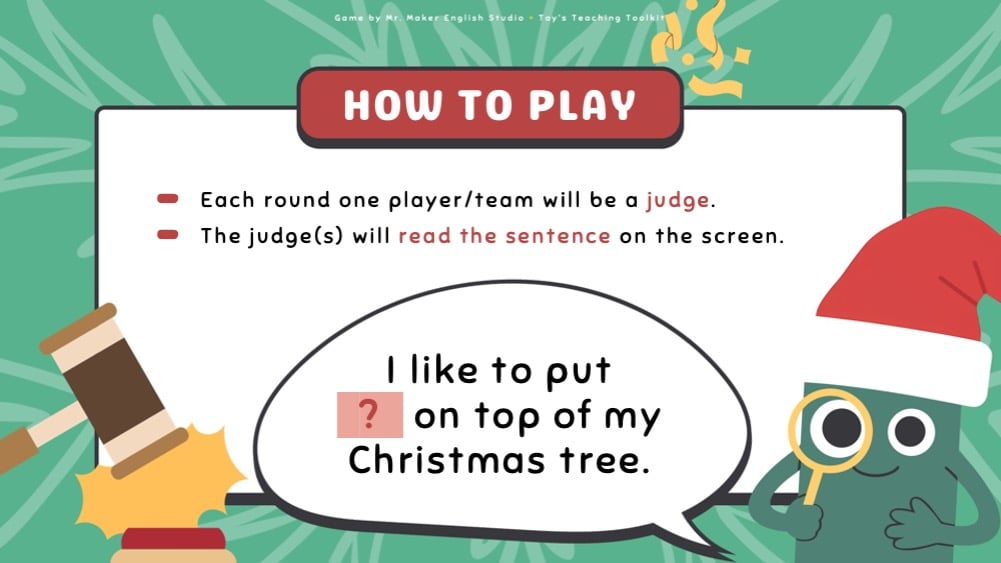 - The judge reads the Christmas-themed sentence (with a blank) on the screen aloud