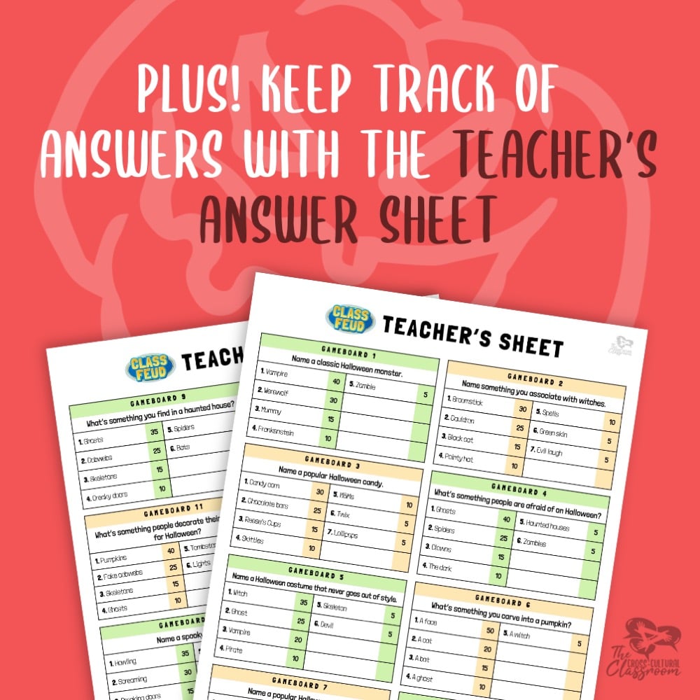 Based on the popular game show, Family Feud, this ready-to-play Halloween edition features a new, streamlined design made for easy classroom play!