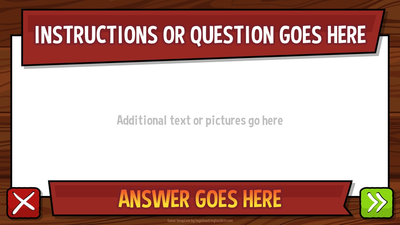 - Further instructions on how to play and edit the game can be found in the notes section of each slide.