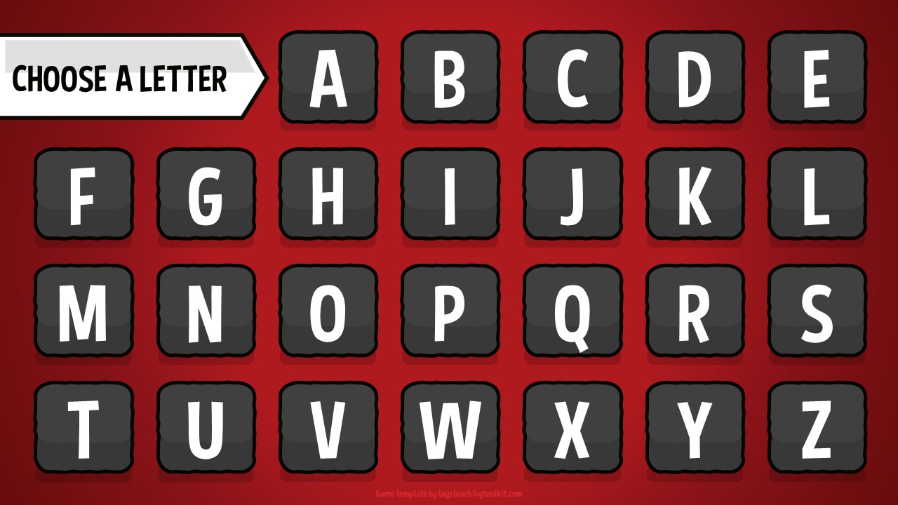 - A student/team chooses a letter and answers the question or completes the task on the corresponding slide.