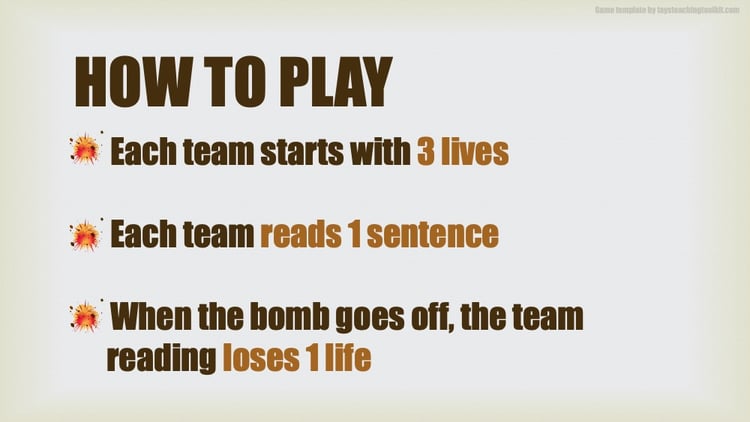 - If playing the game more than once with the same students, merely reorder the game slides to make it feel like a fresh game