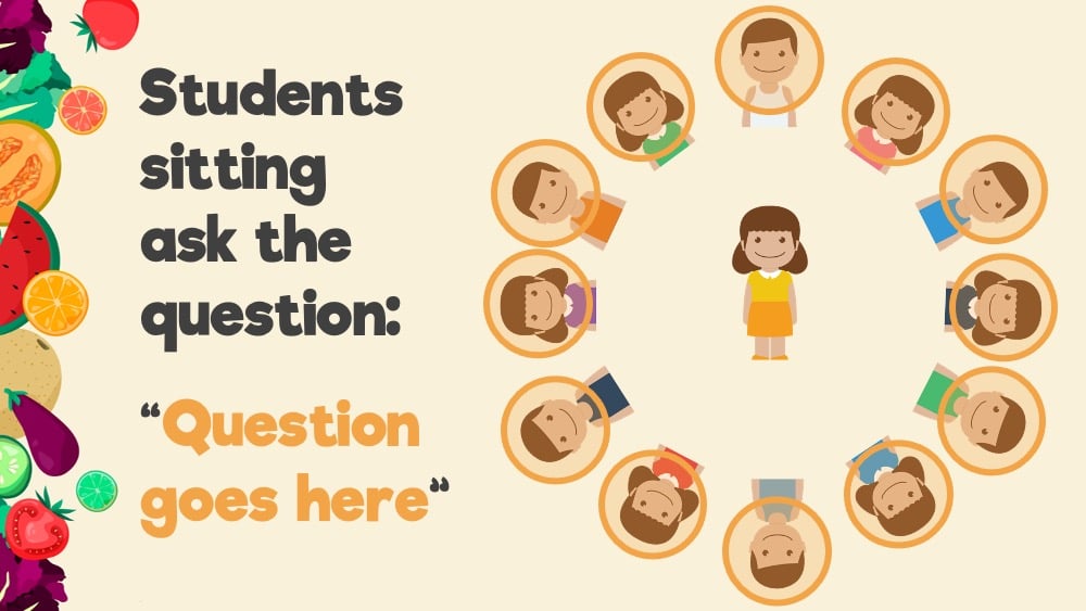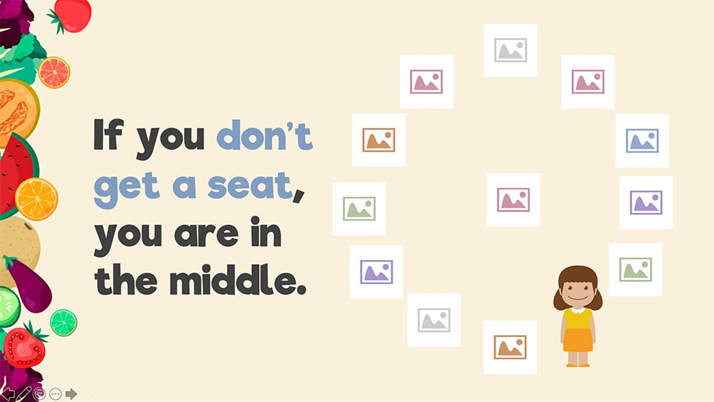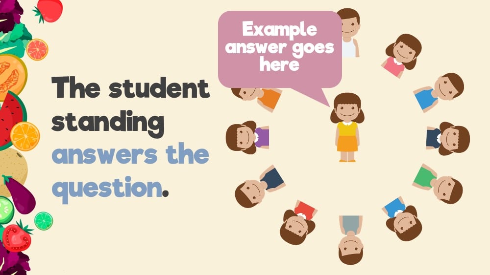 - However, if the student standing is the middle says, "fruit salad," all students must stand up and find new seats.