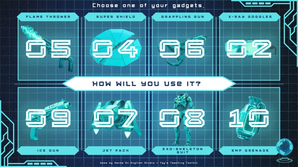 - Each player/team explains how they’ll use one of their gadgets to complete the mission