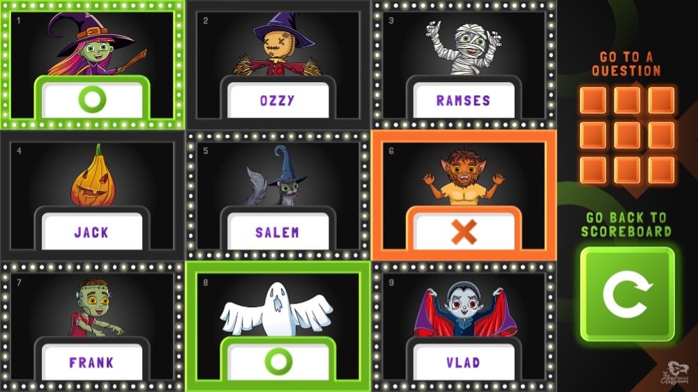 Students will love this ready-to-play classroom version of Hollywood Squares (also known as Celebrity Squares) featuring Halloween-themed characters and questions!