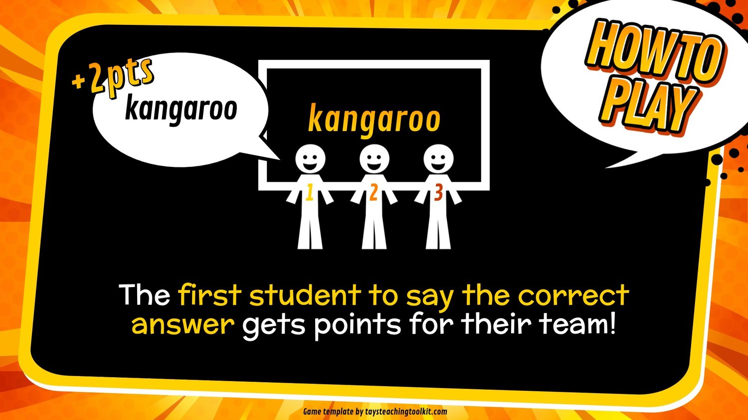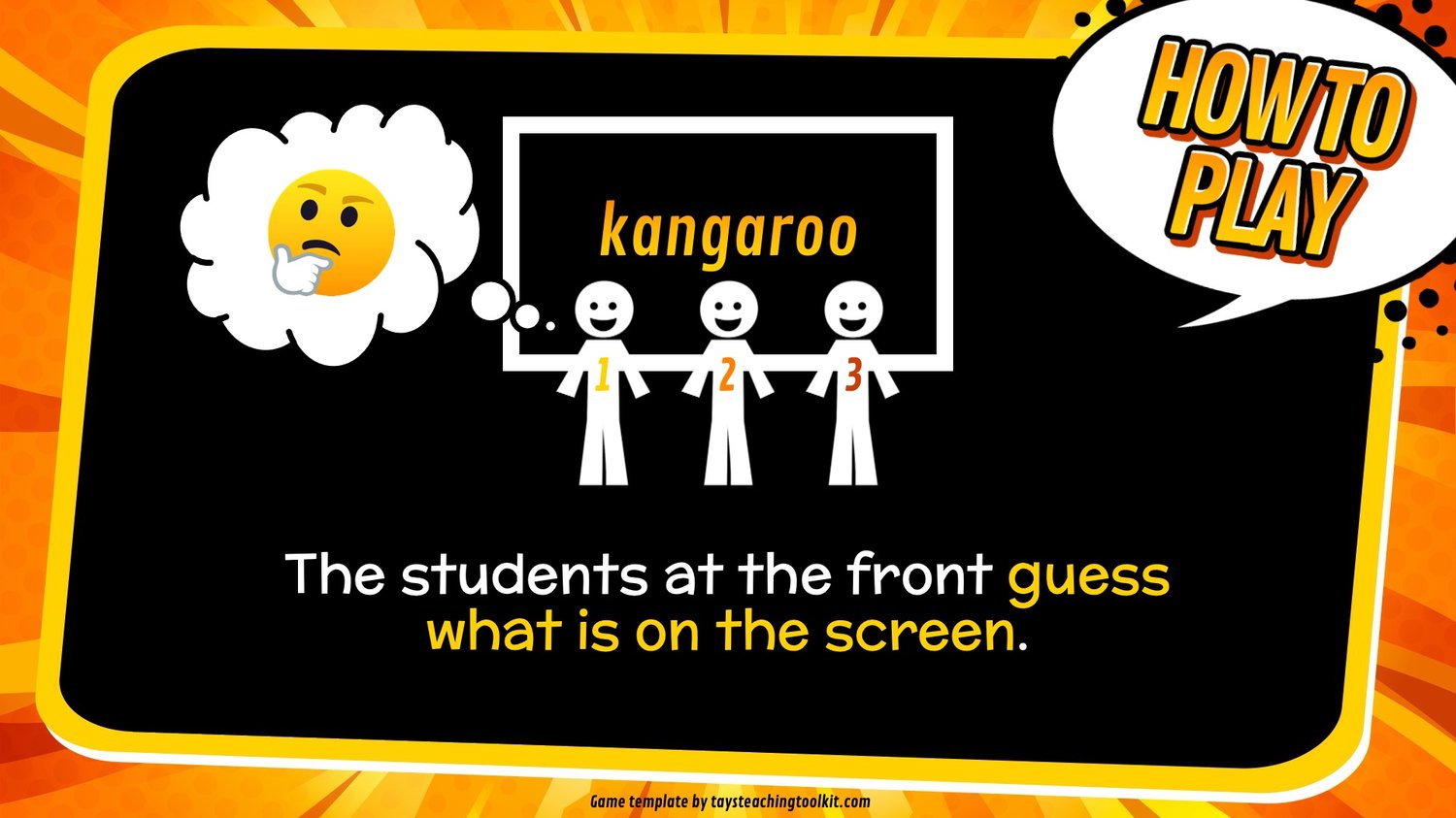 - You will show the rest of the class a picture, word, or sentence and the students at the front will have to guess what's on the screen behind them.