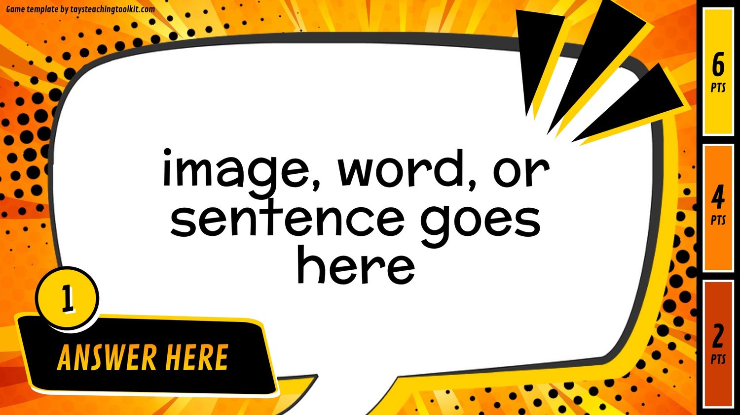 - You can also use this template to play using the original Hot Seat game rules: One student comes to the front and the other students give them clues about what’s behind them on the screen. In this version, the student at the front tries to guess as many pictures or words as possible in a set amount of time.