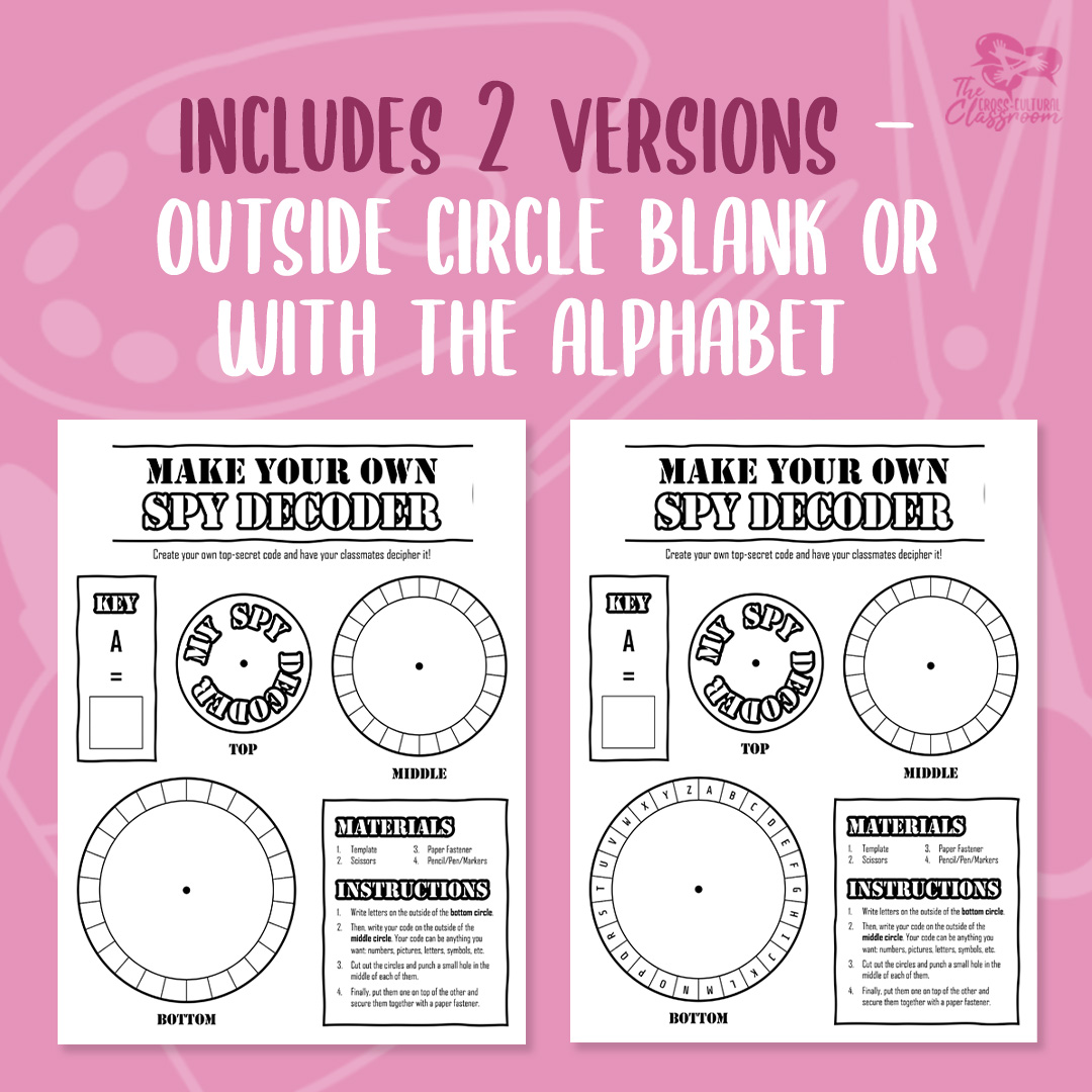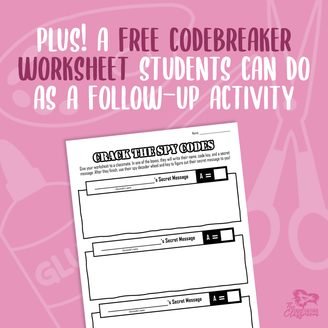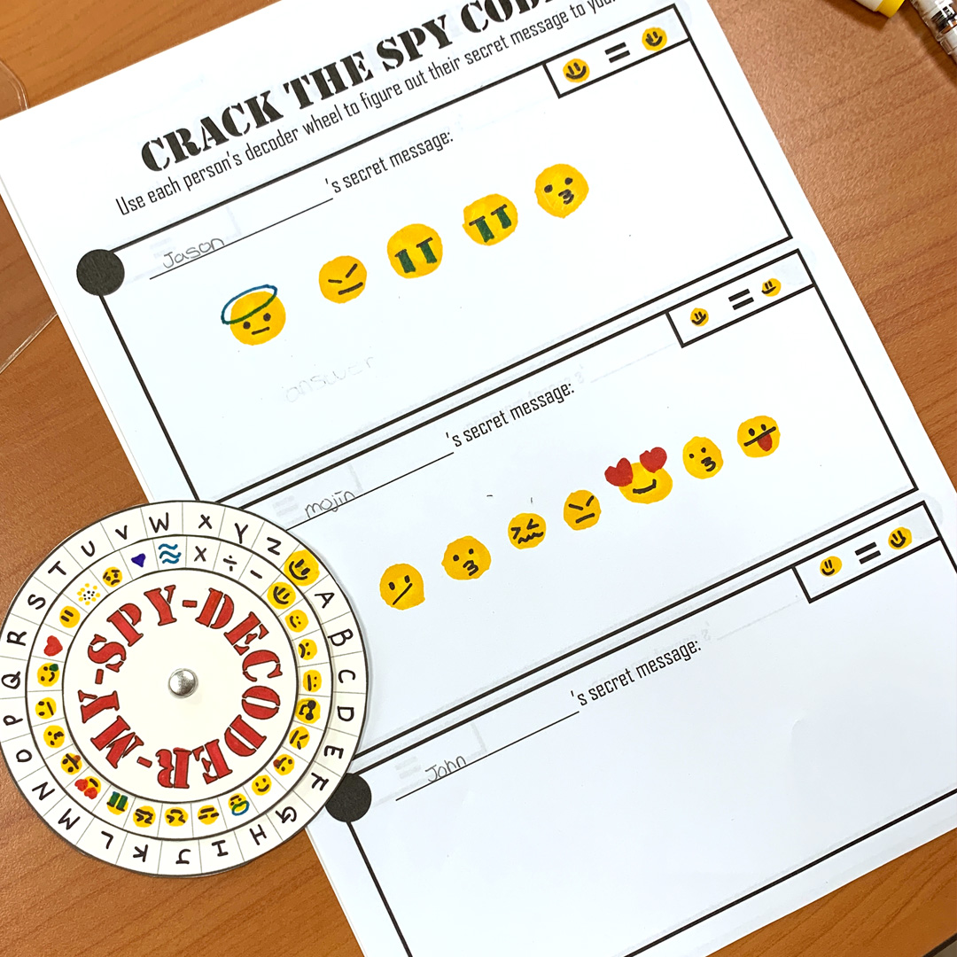 - In one of the boxes, they will write their name, code key (A=__), and a secret message to their classmate using the spy decoder wheel they just made.