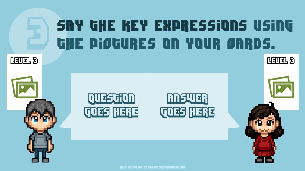 - The instructions above are for the speaking version of this game. If wanting to play it as reading game, use text on the game gards instead of images. The template for these cards are provided in the PowerPoint as well.