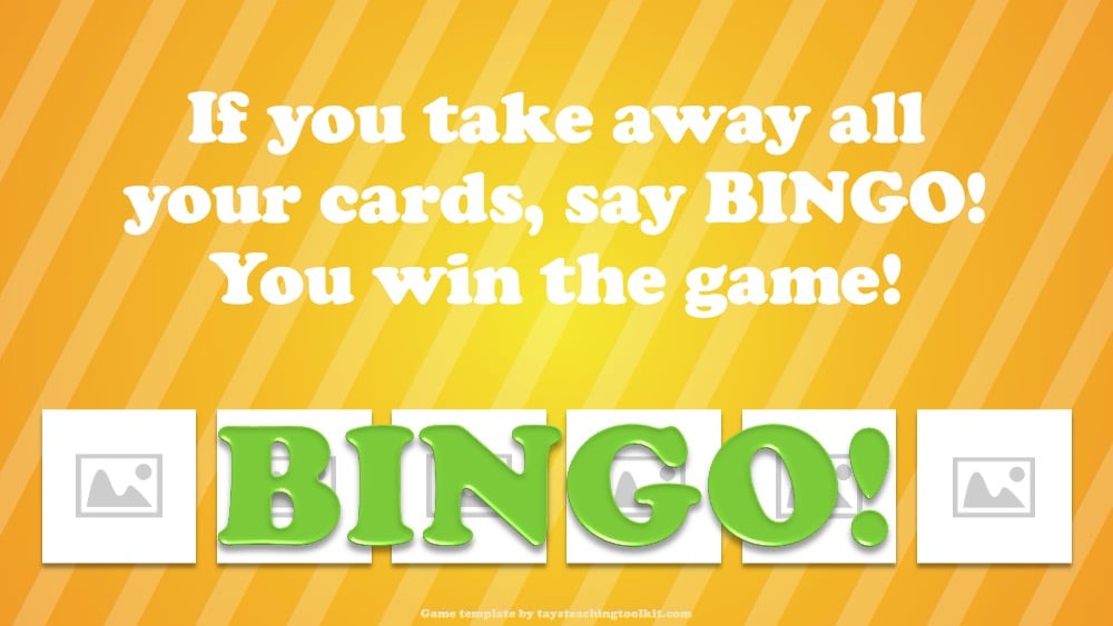 - The instructions above are for the listening version of this game. To add a reading component, use cards with text instead of pictures on them. The PowerPoint template also includes slides for this version.