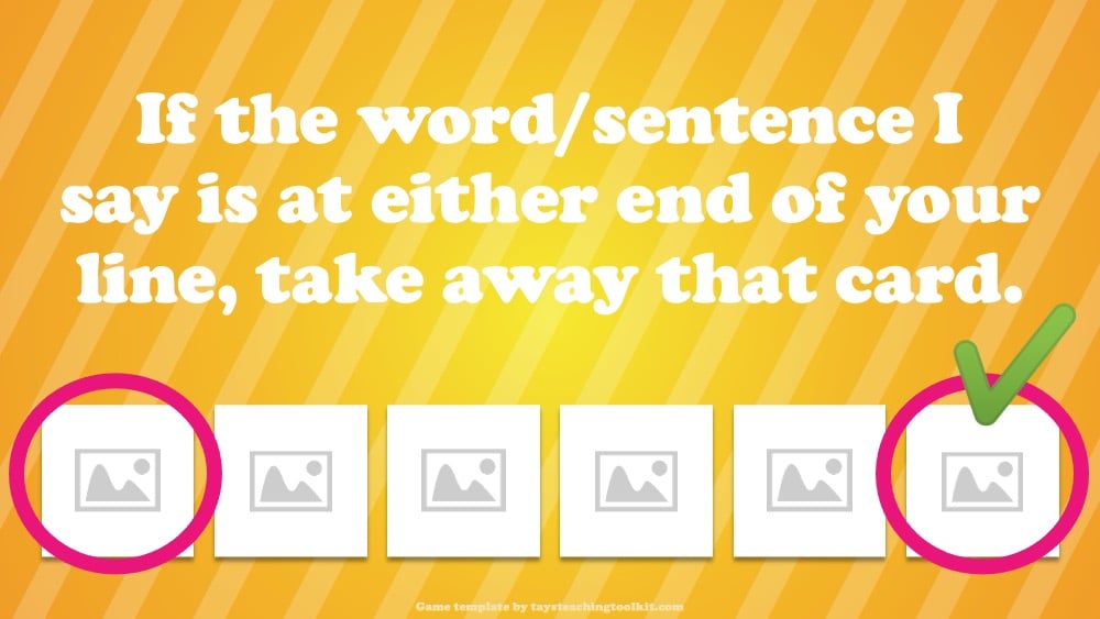 - If the word/sentence the teacher says is at either end of a student's line, they can take away that card.
