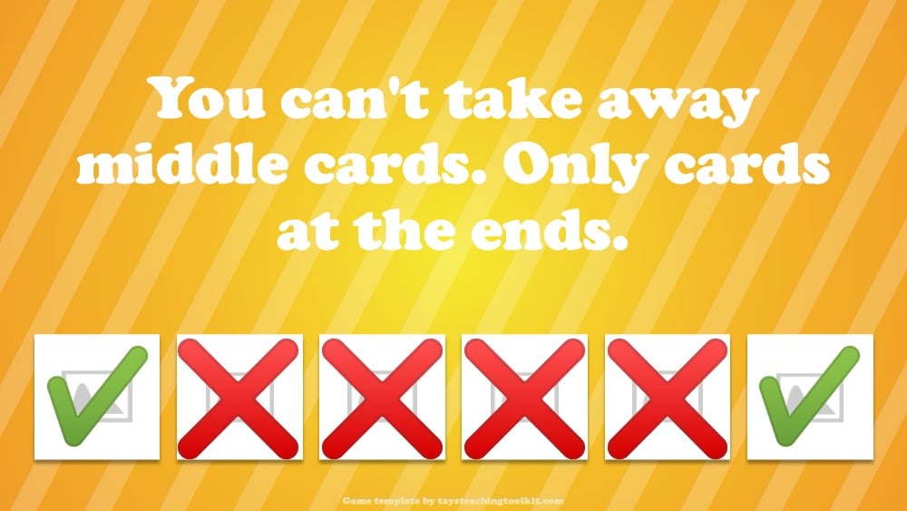 - Very important: Students can't take away middle cards. Only cards at the ends.