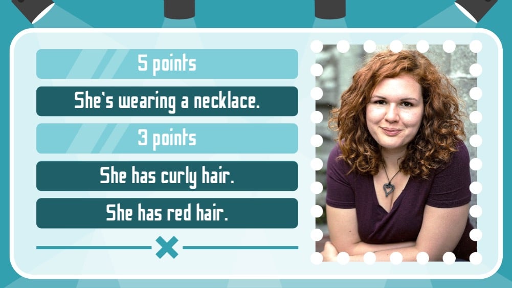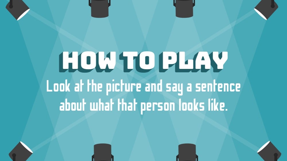 A great educational activity in the form of a gameshow! Download this language game as a fun way for your students to practice language describing people's appearances!