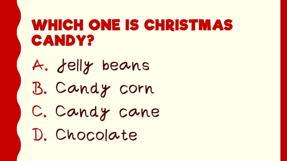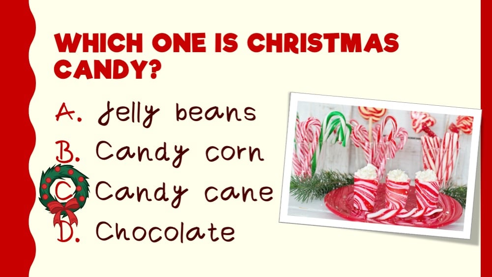 - The game includes 12 multiple choice general knowledge questions about Christmas