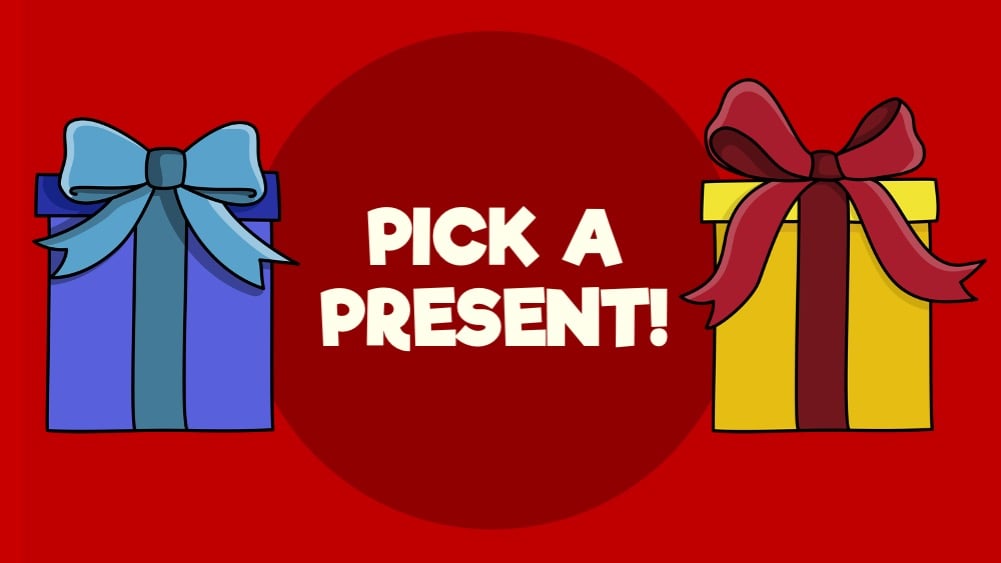 - The answer is revealed on the PowerPoint and teams who get it correct get to choose a present on the following slide (blue or yellow)