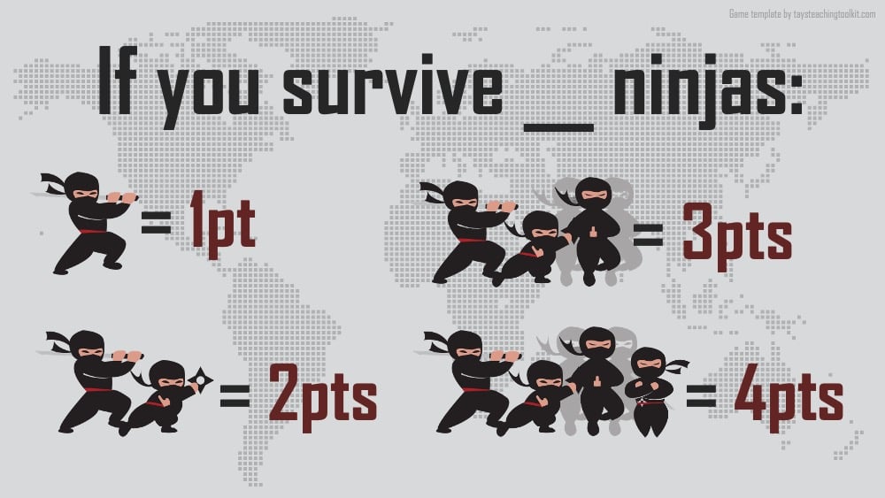- If the scoring system is too complicated for students to understand, you can switch to a simple scoring system where teams get 1 point if they're not attacked (doesn't matter how many ninjas attack).