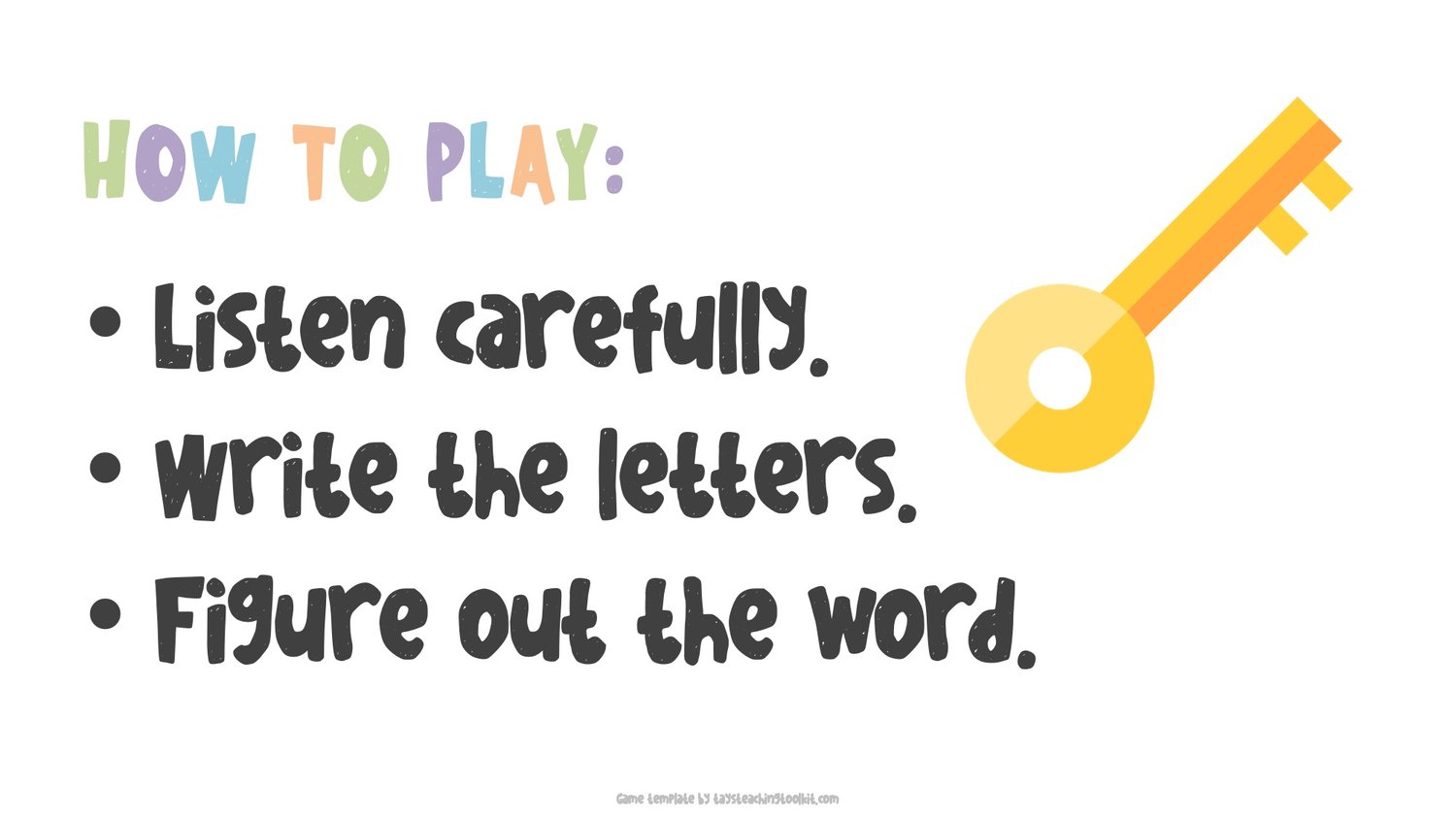 - After the teacher checks that students wrote down all the correct letters, the students try to unscramble the word and write it down once they figure it out.