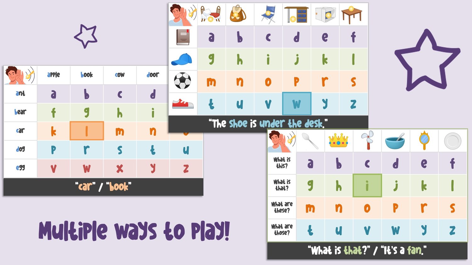 - The teacher will say a certain word/sentence using white boxes from the left and top sides of a chart.