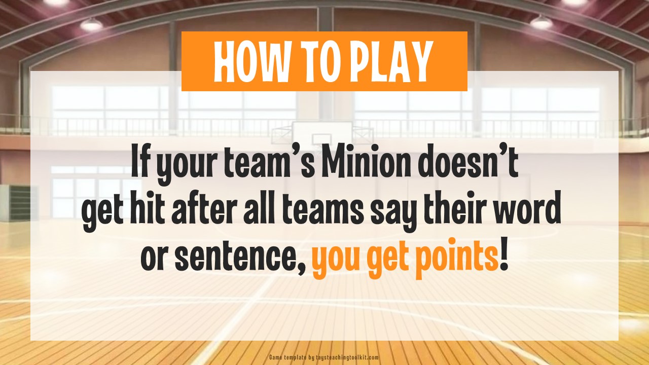 - If a team’s initially-chosen Minion doesn’t get hit after all teams say their/sentence they get points.