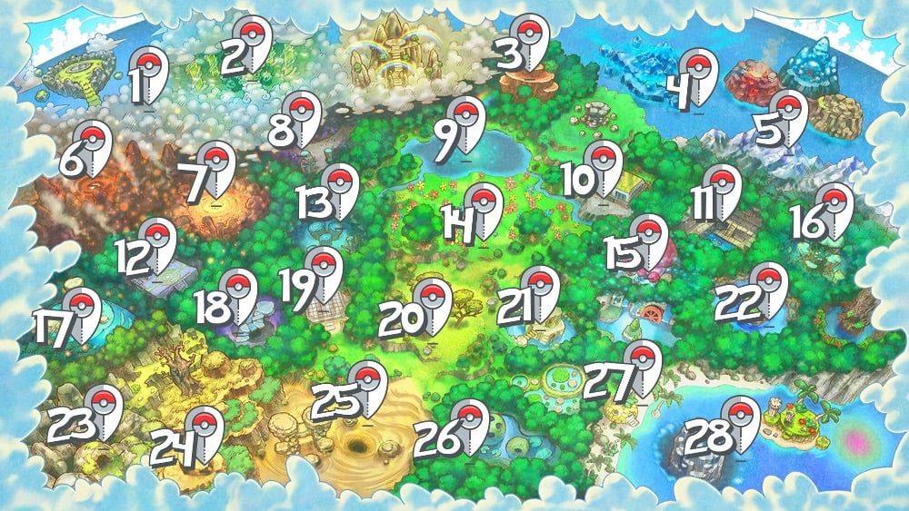 - Depending on the map location, teams will find certain types of Pokemon. For example: water-type Pokemon will be in water or beach locations, fire-type will be near the volcano, bug-type will be in forest areas, etc. Backgrounds of these wild Pokemon match these locations as well (as best they can)