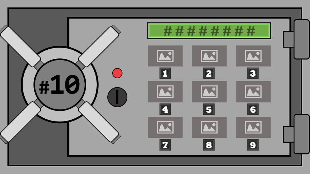 - Students can see different pictures on the safe, each with numbers under them.Â