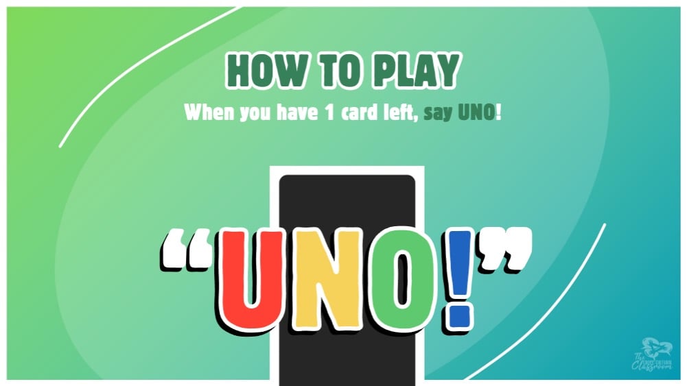 - When a player has only one card left, they say "Uno!"