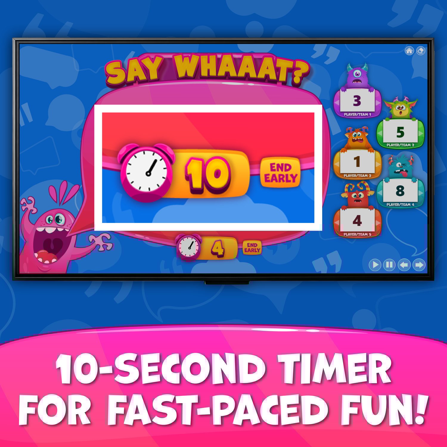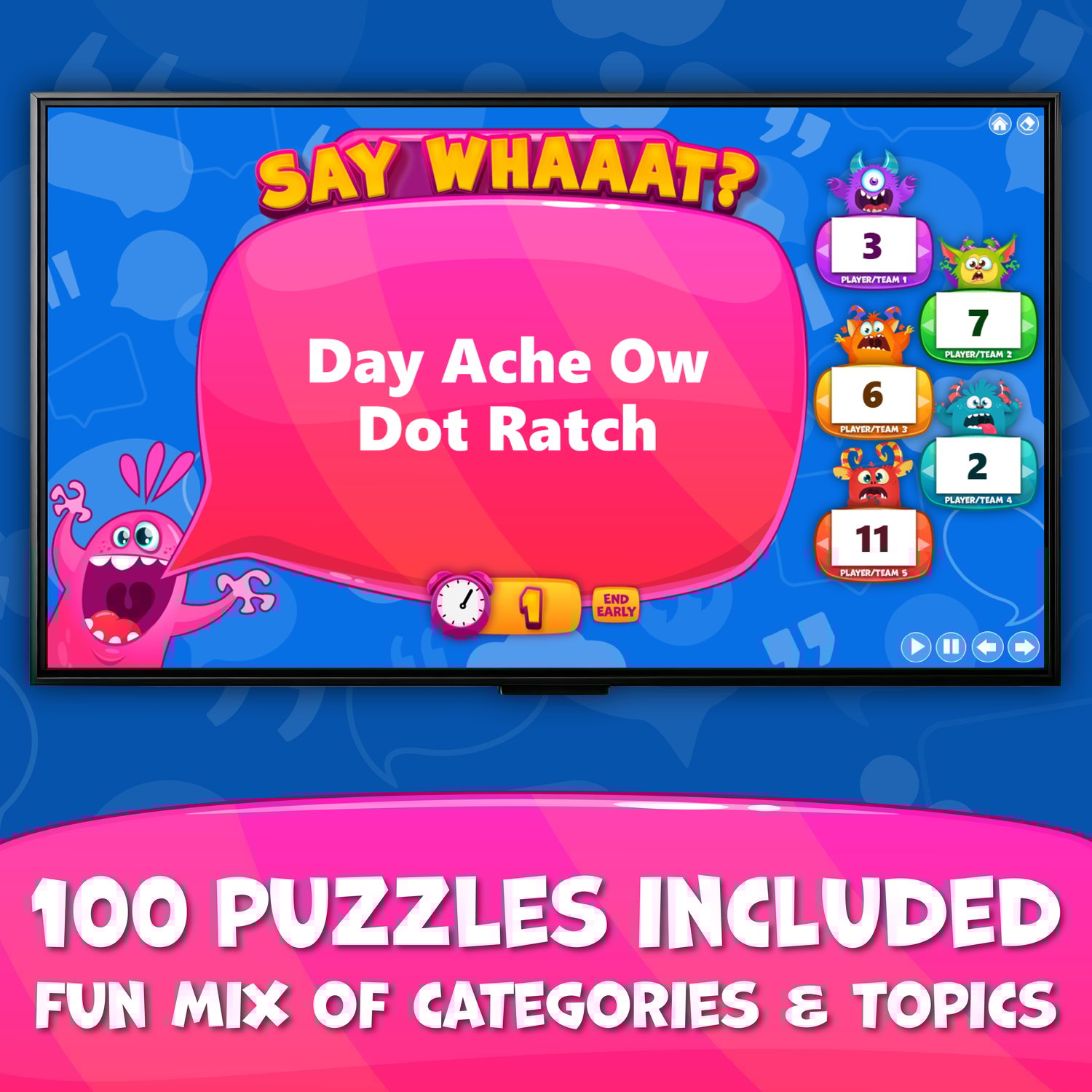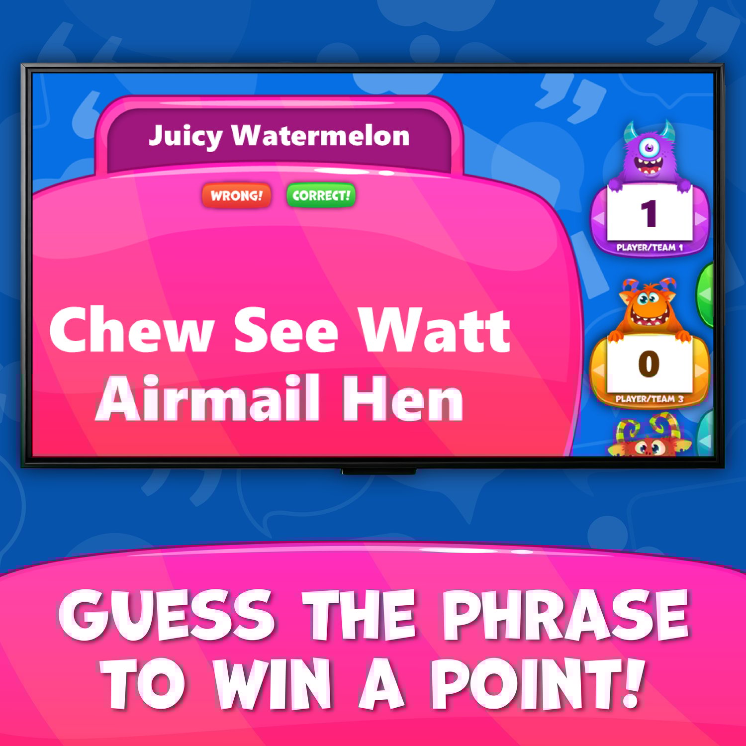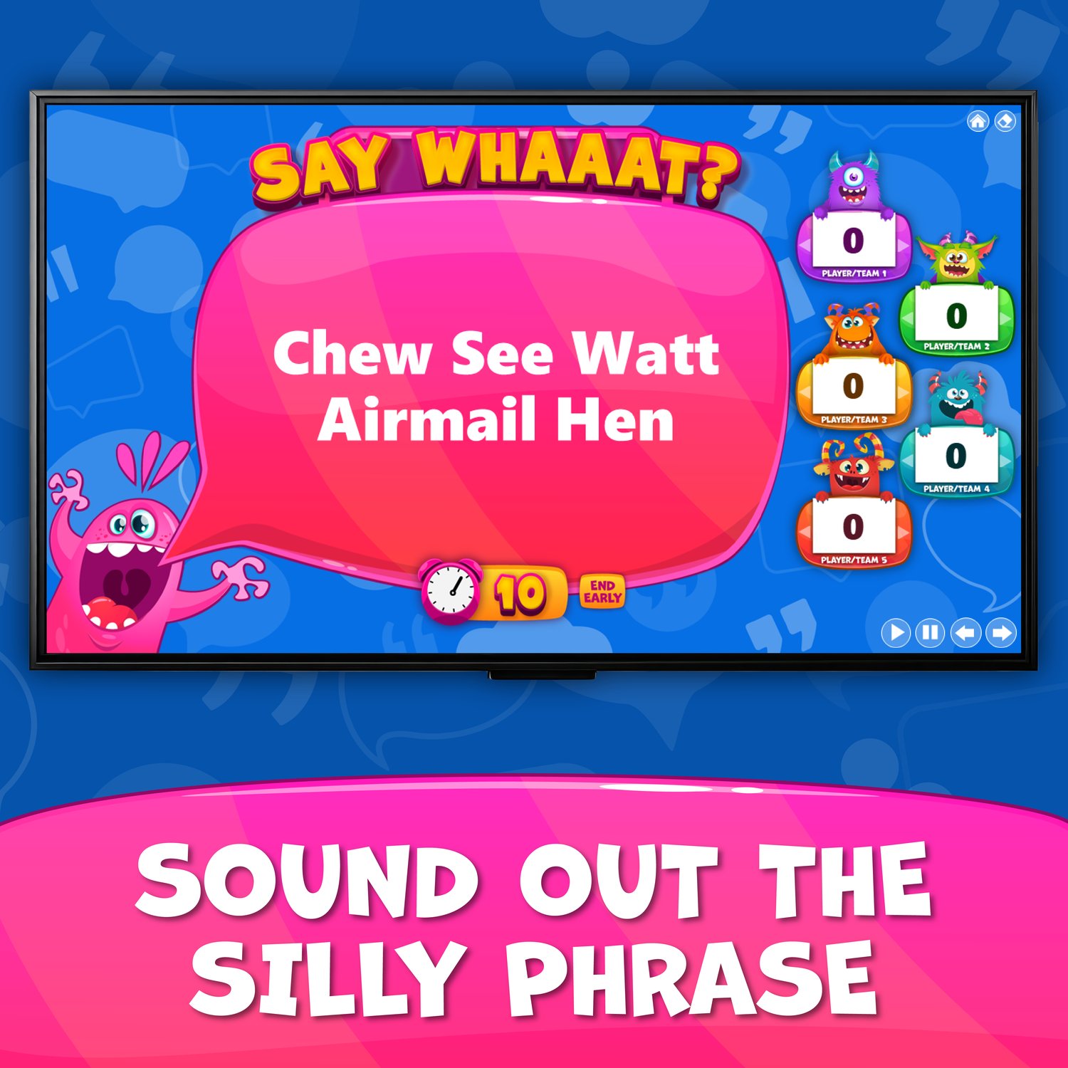 - Players get 10 seconds to sound out a nonsensical sentence and guess the familiar phrase or word.