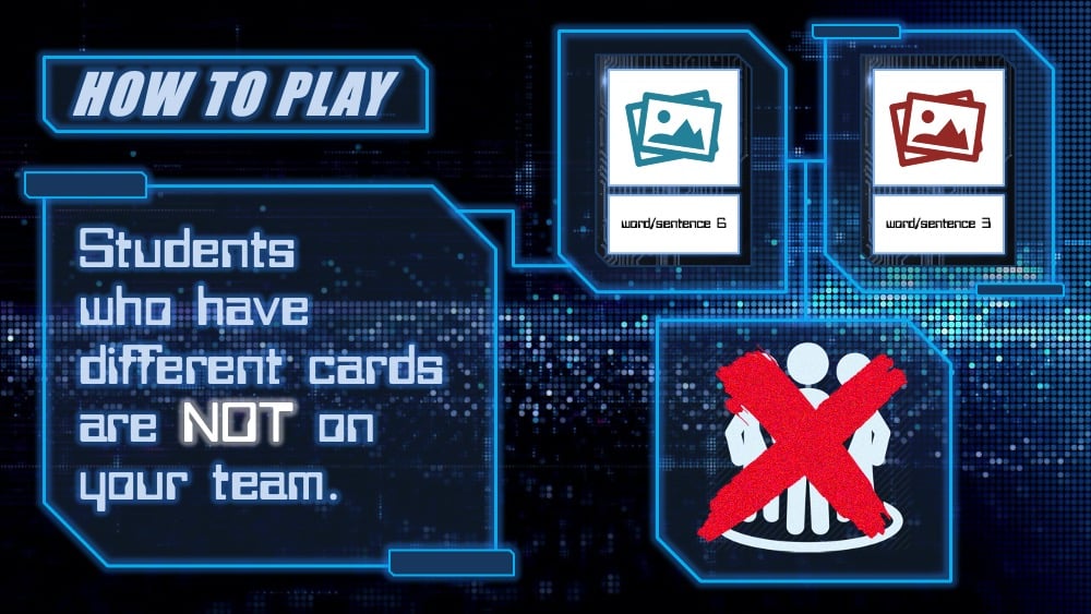 - If the student who asked the question has the same card, they become a "team" and try to find their other "team members" together.