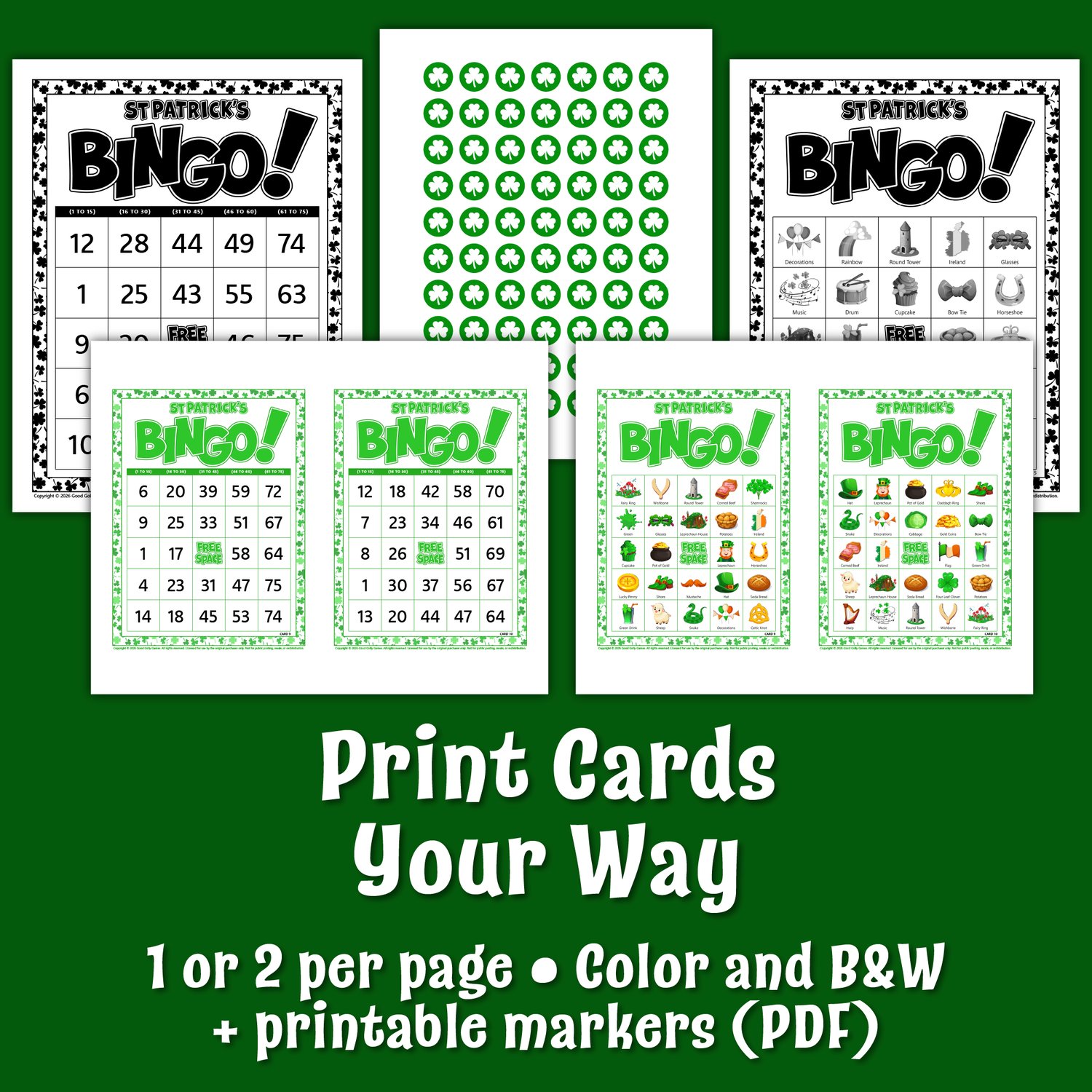Download and start your St. Patrick's Day bingo party in minutes!