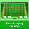 - Players choose a category and question value. Answer correctly and win the value – but lose the value if you answer wrong or run out of time!