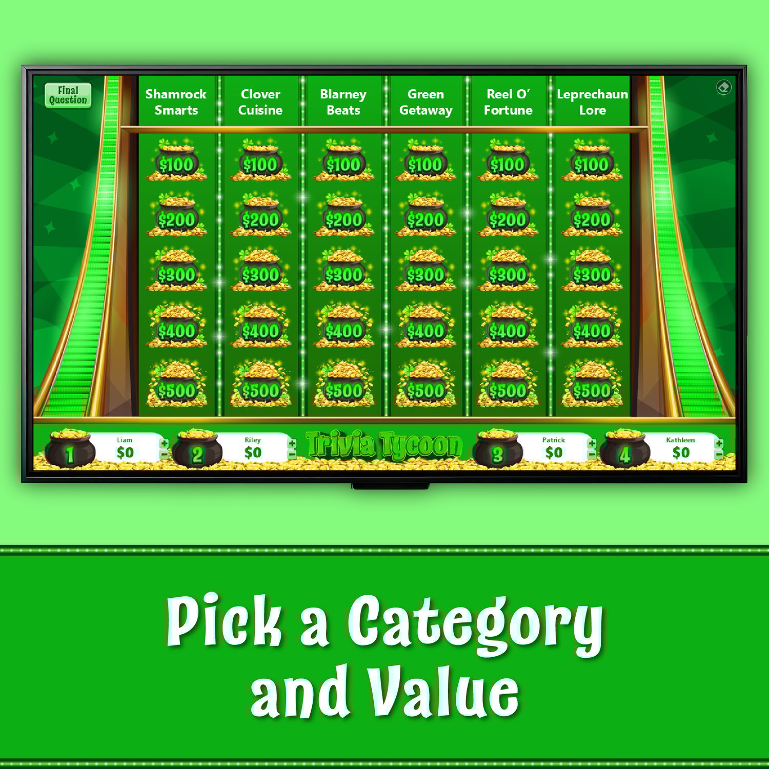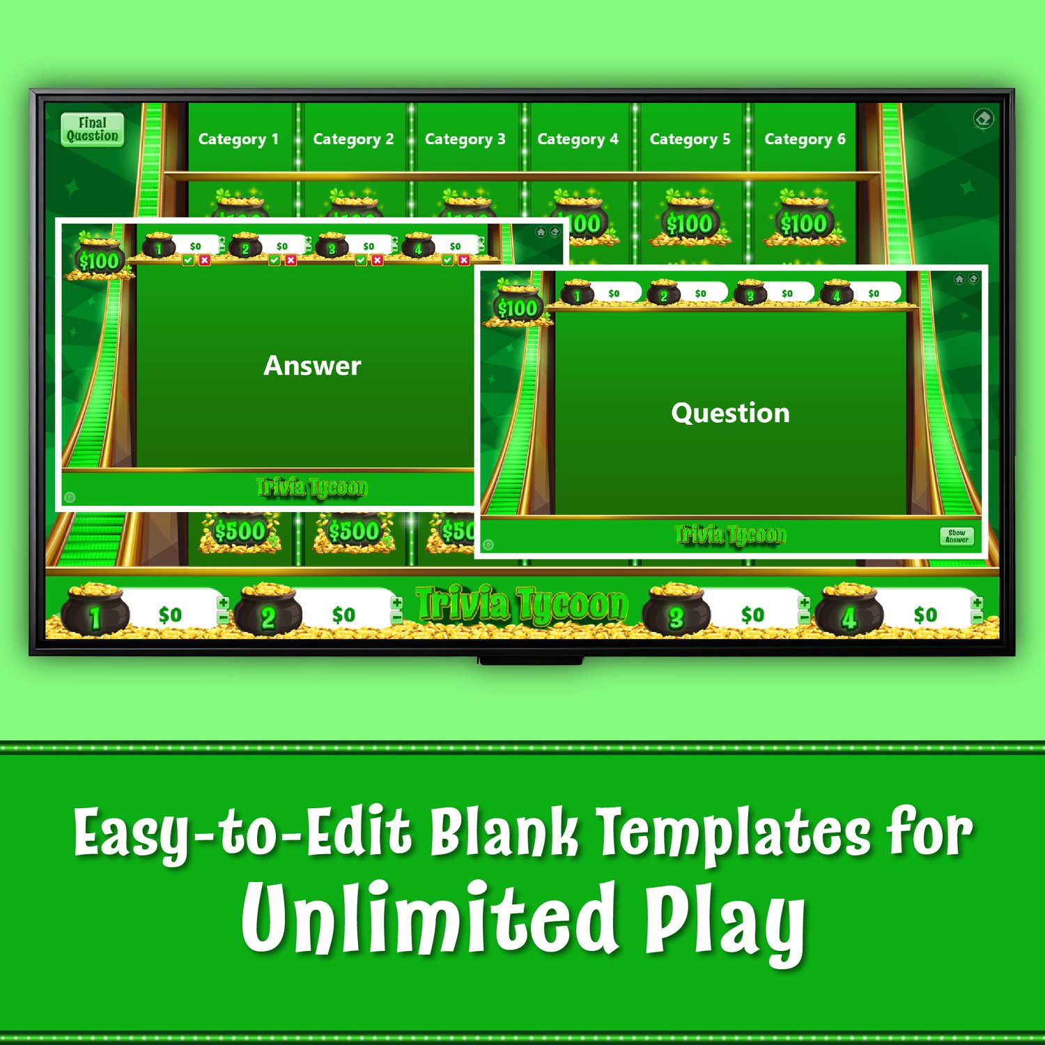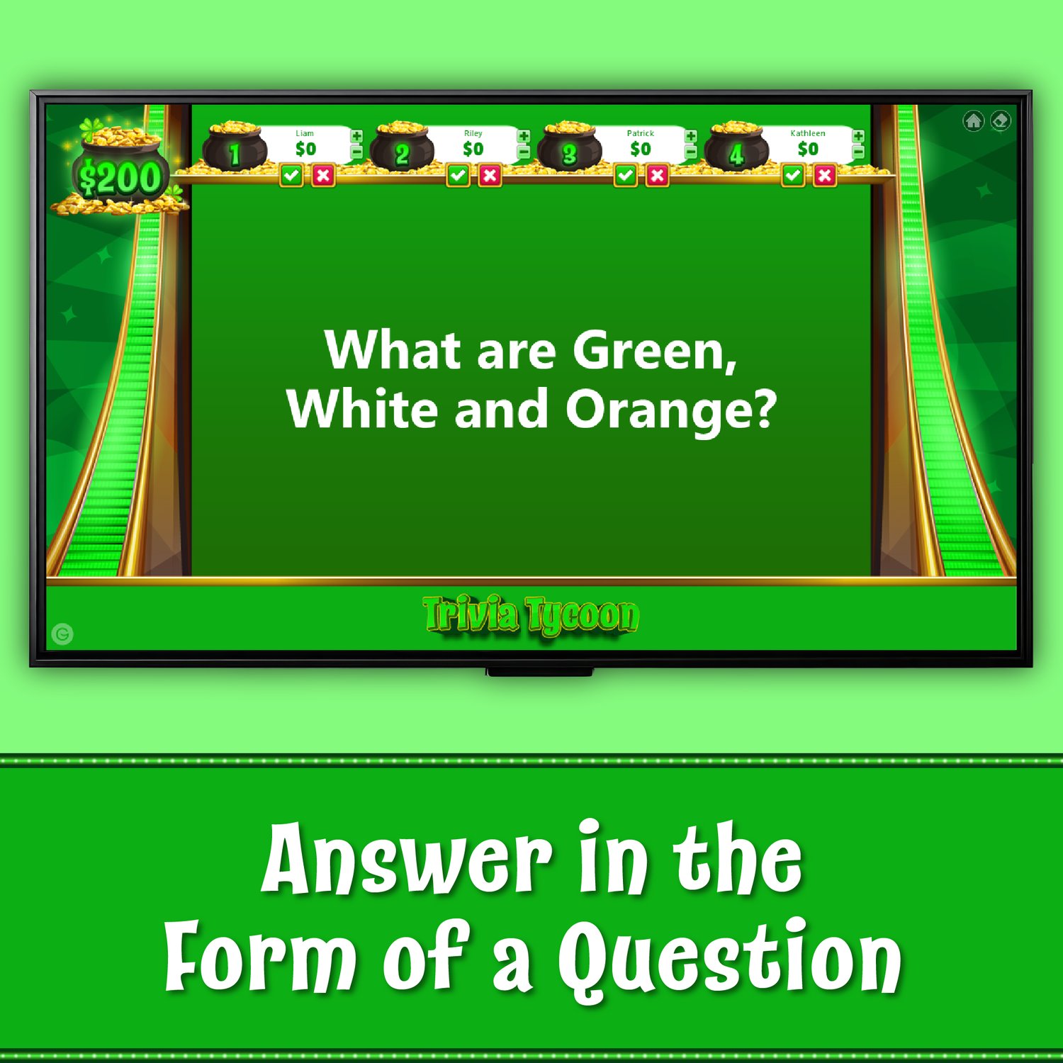 St. Patrick's Day Trivia Tycoon – Interactive PowerPoint trivia game show for classrooms