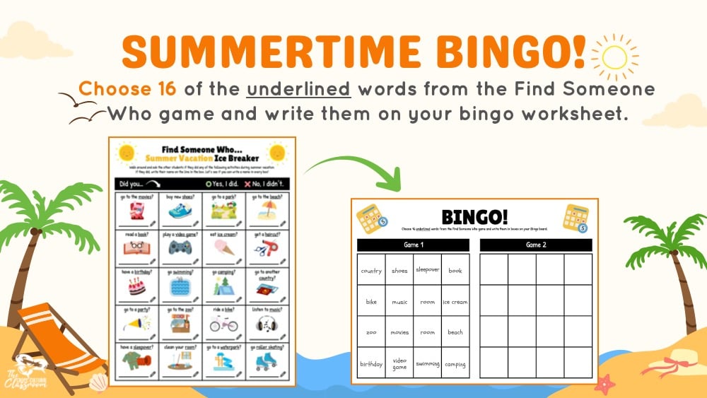 Summer Vacation Find Someone Who + Bingo Game