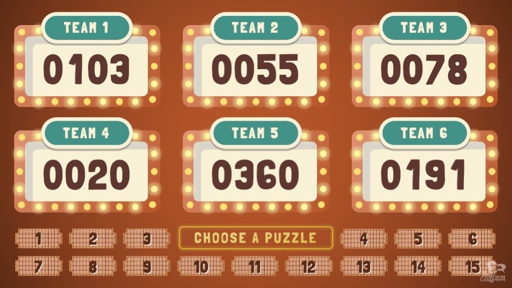 - If a student/pair/or team solves the puzzle correctly, they get to double the points they’ve accumulated in that puzzle round and add it to their overall game score on slide 9.