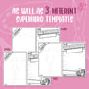 - 9 comic cover templates (3 different front cover designs, each with 3 different back cover designs - male silhouette, female silhouette, and no silhouette for a completely custom hero creation)