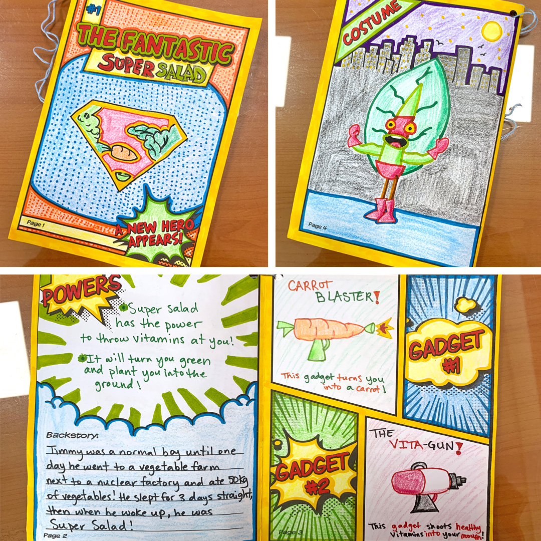 - Students draw, name, and/or describe 2 gadgets their superhero uses.
