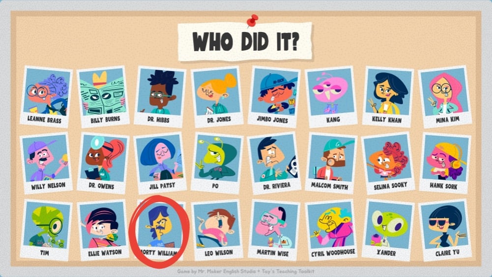 - As the game continues, students use the information they collect to rule out suspects and narrow down who the thief could be.